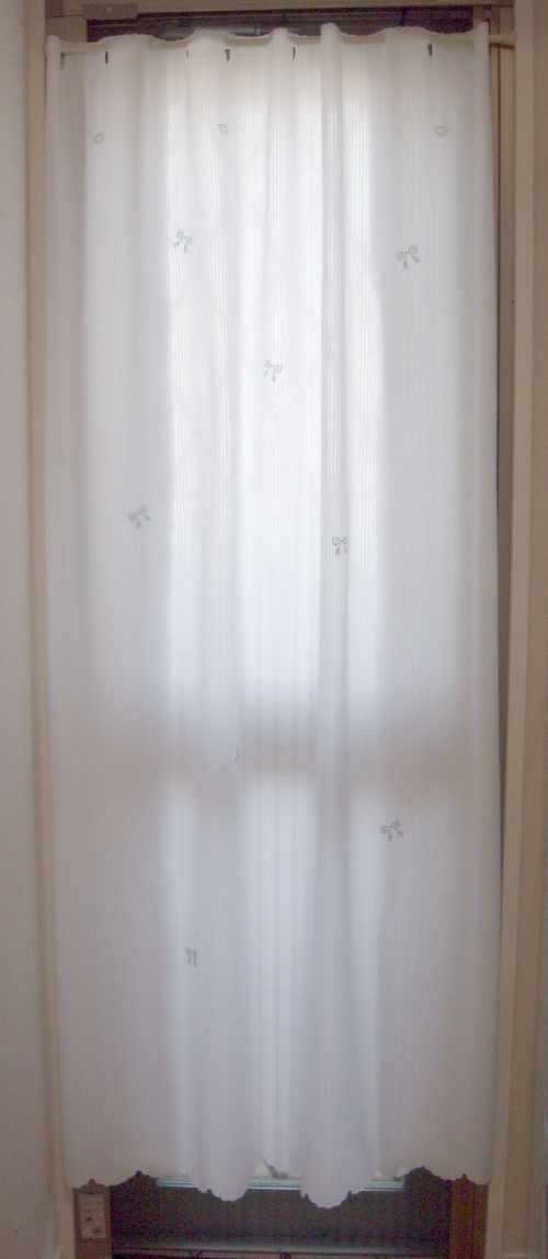 勝手口に西日が差して暑く、出入りするので、カフェカーテンがいいなと、、、探していました。ネットで見つけました!!断熱、ミラーカフェカーテンを見つけました!!!しかも、丈が長いのを、、、希望通りの幅145cm、丈176cm のレースのカーテンです。http://store.shopping.yahoo.co.jp/tengoku/ 少し寂しいかなと思ったので、手芸屋さんでフィックスストーンを買ってきて付けました。可愛いのが完成です!思い通りの勝手口に変身しました。フィックスストーンを12個付けたので多少費用はかかりましたが、私だけのオリジナルなので、付加価値が付きました〜