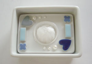 白磁のティッシュボックスを購入し、私なりのアレンジをしました。好みのタイルを使って、可愛いのができました〜