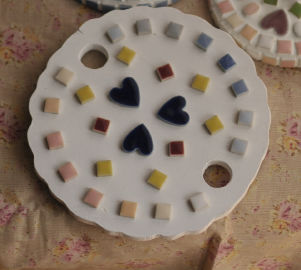 以前に制作したことのある鍋敷きとキッチンペーパーホルダーの新作です~雰囲気は似ていますが、いろいろなところでタイルデザインが違います~何度見ても可愛いですね~可愛いものを眺めているとほのぼのした気持ちになれるのは私だけでしょうか?プレゼントにも喜ばれている作品です。
