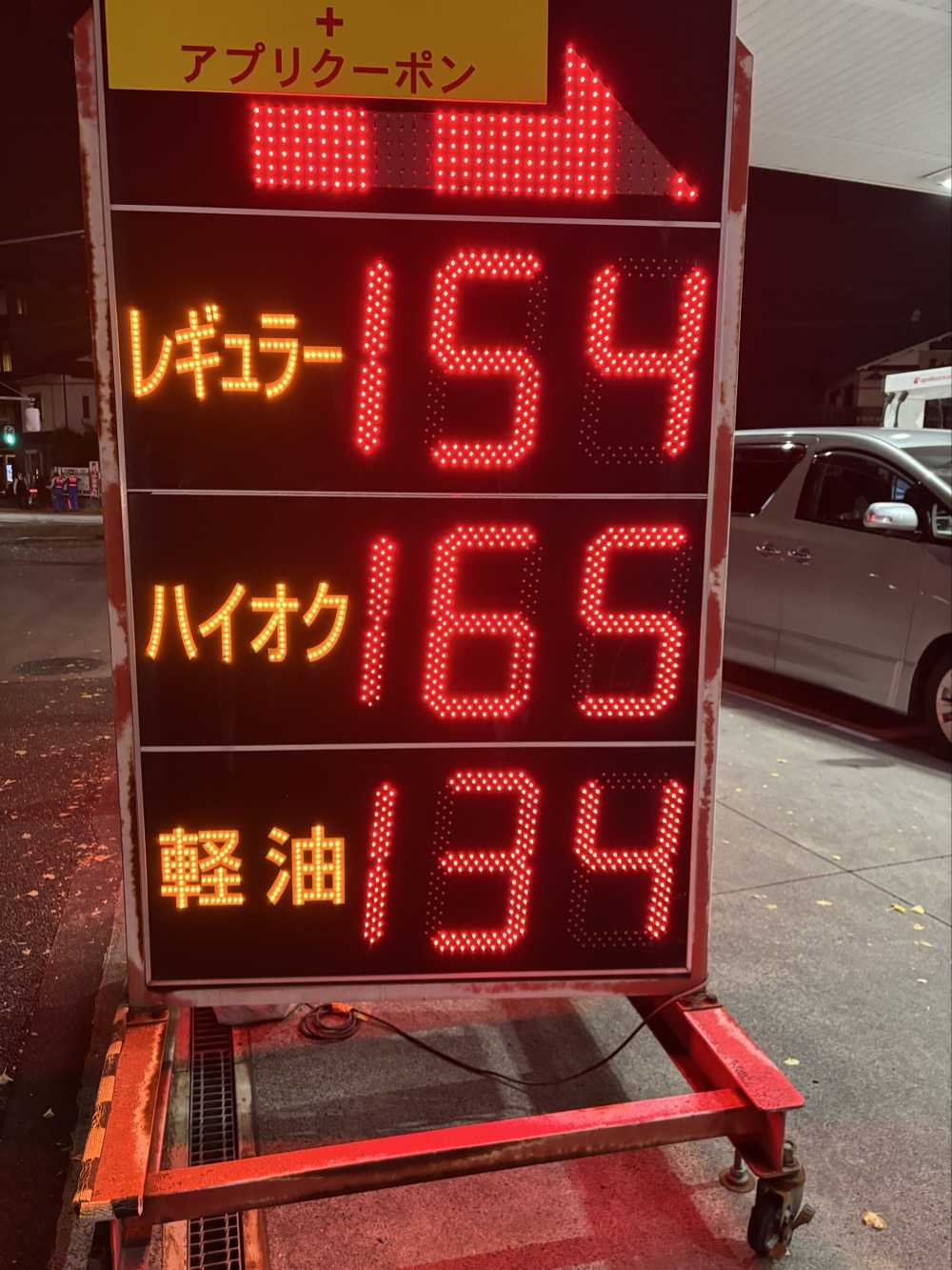 レギュラーガソリン・ハイオクガソリン・軽油価格 前回より¥8安い