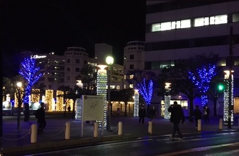 忘年会の帰り、降っていた雨もやみ駅前のイルミネーションが新鮮に感じられた。 バスを待っていて、いるなと思ったらいましたいました。出口に一人、歩道わきに一人。傘を握ってゴルフスイング練習中(笑) 思ったのですが、ゴルフスイングは点中心の回転運動なのか、軸中心の回転運動、なのか? ならばその中心は首の付け根、なのか背骨を軸とした回転運動か? バスの中で考えていたら、眠ってしまい運転手さんに終点で起こされた(うましかだね~)
