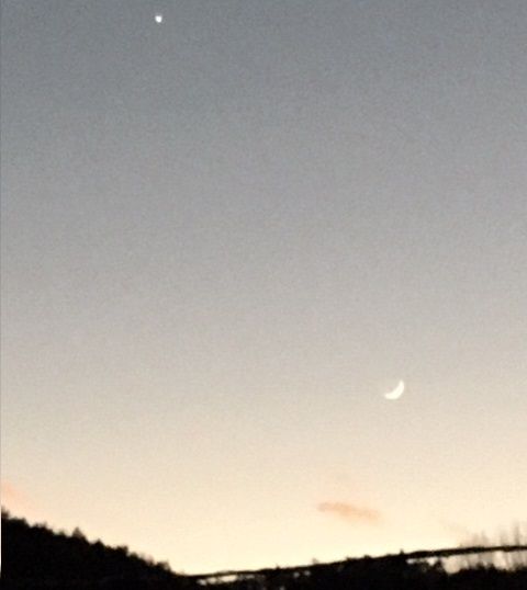 12月28日17:00煙草を吸おうとっベランダに出て、薄暮の西空に興味ある映像を見た。弓月が放った矢が飛んで行ったような位置に金星が。 どうやら2019年12月~2020年5月くらいまで金星は宵の明星となって西の空にみえるらしい。しかも今日は月と金星が最接近。 よし、珍しい光景をぜひ見てみようではないか。 すでにヨッパでなければの話だが・・・・