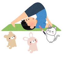 雨が降ったり忙しかったりで、ランニングやウォーキングに出かけられない日も、「エア縄跳び」だけは毎日続けるようにしました。もう半年ほどになります。1日500回。こう聞くと「えーっ」となって、真似してくれない方が多いので、3分くらいでいいですよと、時間でお勧めしています。100回は30〜40秒もあれば終わってしまうので、3分も跳べば十分です。1回1分を1日3回など小分けにしてもOK。全身すみずみまで血流を行き渡らせるのに「縦の動き」がよく、なかでもエア縄跳びが手軽と聞いたので、実践中なのです。具体的な変化としては、ヨガでいうところの「鋤のポーズ(挿絵参照)」が苦手でしたが、楽々できるようになってきました。背骨周りの靭帯など、血液が回りにくいところもみずみずしくなり、柔軟性を取り戻してきたのでしょう。ここからすると、五十肩が治ってきて、痛くはなくなったけれど、肩周りの靭帯がコチコチでバンザイや後ろ手がしにくい方にもお勧めです。わかりやすくエア縄跳びと書きましたが、手は回さなくて下げたままの「その場跳び」で大丈夫。私もそうしています。体重も半年前より2kg減でずっと安定しています。これを話したほうが真似してもらえるかも。跳んでみて、どこか痛いときには無理せずに、跳ばずにリズムをとりながら縦に揺れるだけでもよいですよ。ぜひ。「快風身体均整院」お知らせコーナー◯均整施術ではどんなことをするのか、普段の施術の流れを、「快風院 均整日記」に連載しています。◯ 『内臓ウォーキング』他、拙著のご紹介:これまでに6冊出版させていただきました。感謝いたします。◯快風身体均整院ブログの挿絵には無料イラスト かわいいフリー素材集 |「いらすとや」さん、無料イラスト「イラストわんパグ」さんのイラストを使わせていただいています。いつもありがとうございます。