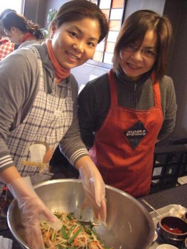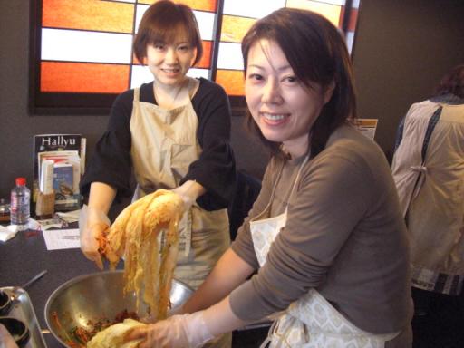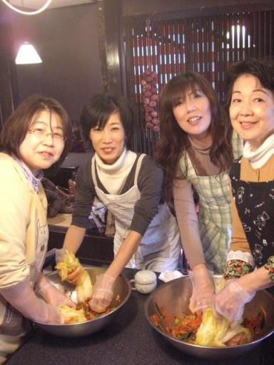ただいま19時13分今日の夜は、ちょっと静か。。なので、ブログ書いちゃいます! さてさて、無事にキムチ作り体験も終わり、ほっとしています。皆さんが、楽しんでくださったようで、本当にうれしかったです。皆さんの笑顔のご紹介です~♪野菜を切って、ヤンニョンを作り、白菜にヤンニョンを塗りこみ、くるみます。残ったヤンニョンをおかずにして、ランチタイム♪ 次は、2月17日です!先ほど、2名次回参加への変更がでました。楽しい韓国体験をしたい方、ぜひお気軽に!お問い合わせください 調子にのって、3月もやっちゃいます!!第三回目 キムチ体験に参加ご希望の方、残り8名様です 3月17日(日)10時~参加費 3000円 (お土産、ランチ付)持ち物 エプロン、筆記用具場所 金泉