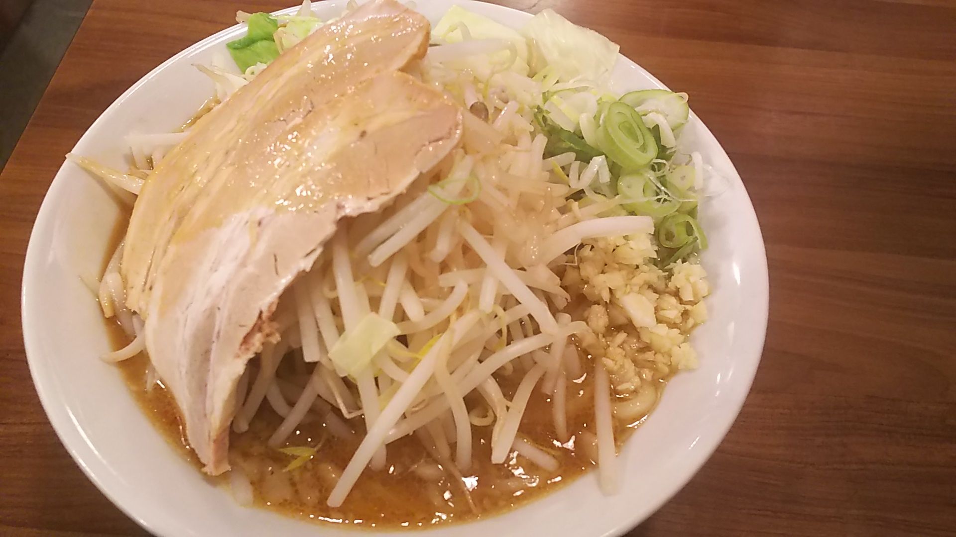 がっつり二郎系のラーメンで、もやしがてんこもりです。