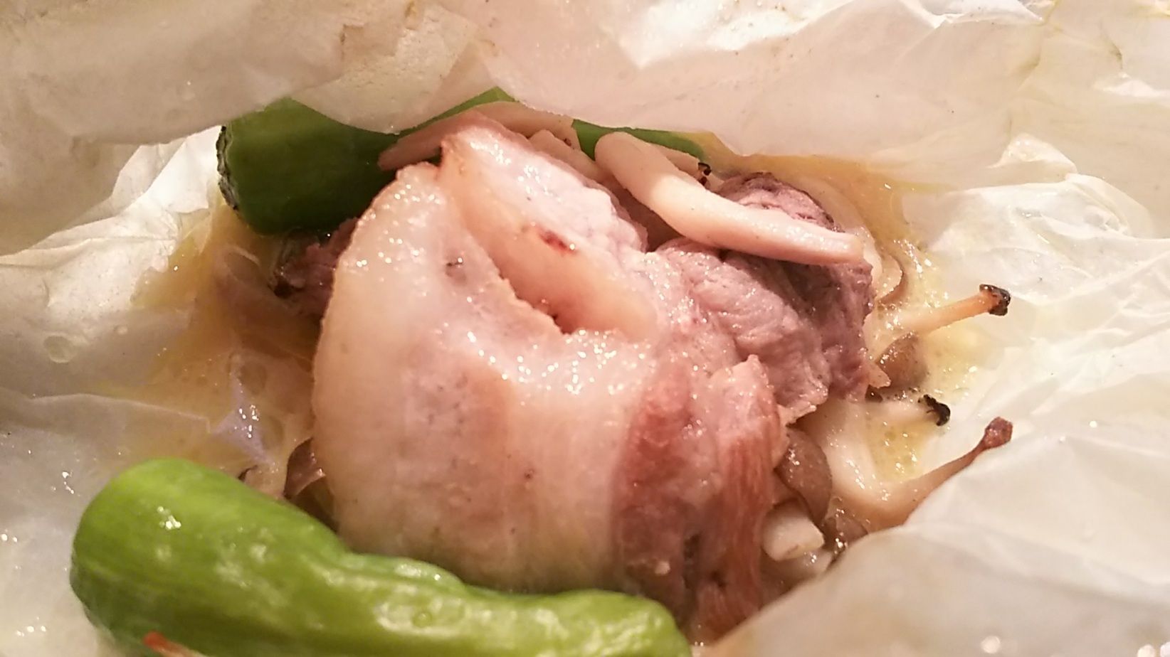 なんと、こちらも豚肉でした。ナントカの黒豚という説明(酔っていたので失念。)、蒸し焼きになっている豚肉は、かなり柔らかい。