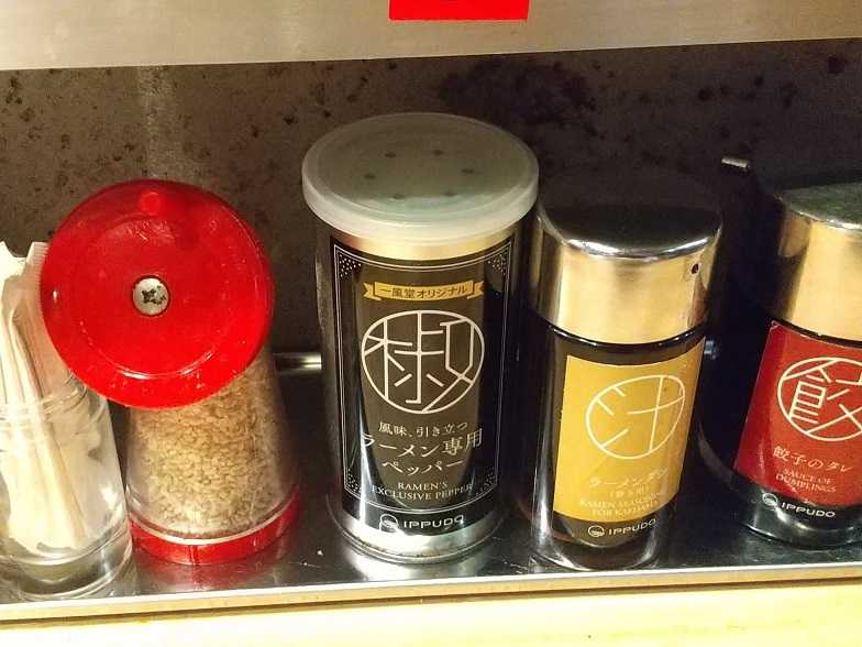 この一風堂オリジナルの胡椒は、パウダーのような白コショウと粗びき白胡椒が混ざっているもの。