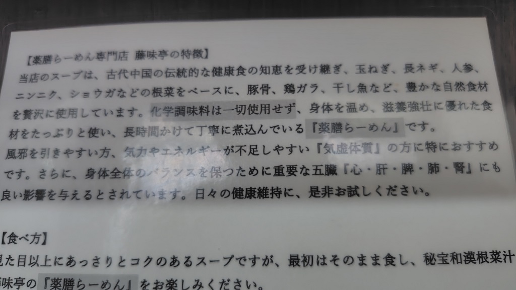 店内に薬膳ラーメンの由来の説明文が書いてありました。