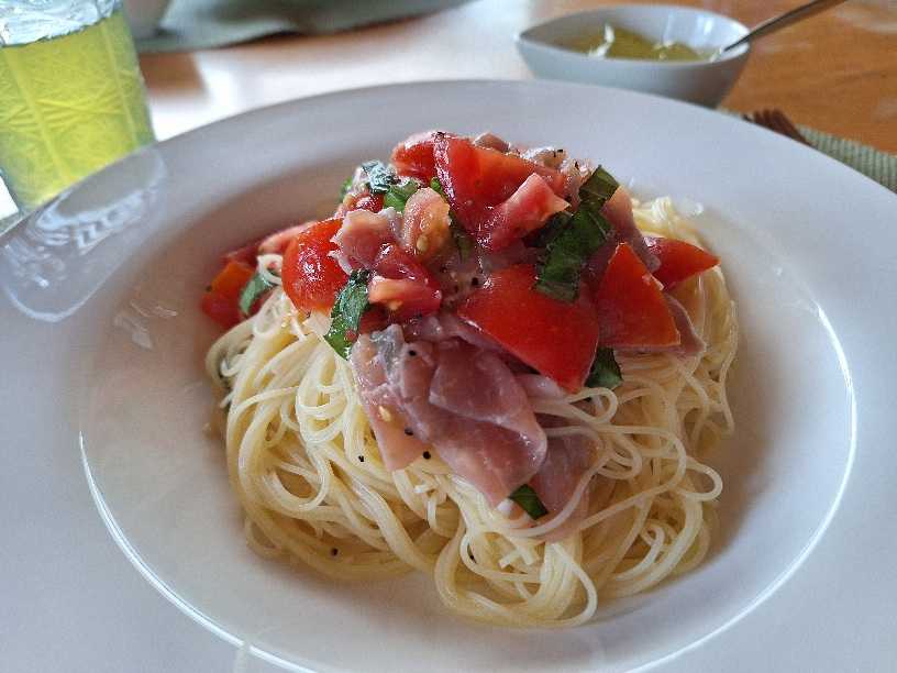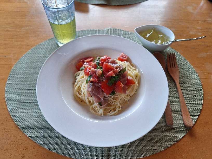 さっぱりとしたオイルパスタ、麺はカッペリーニでぺろり