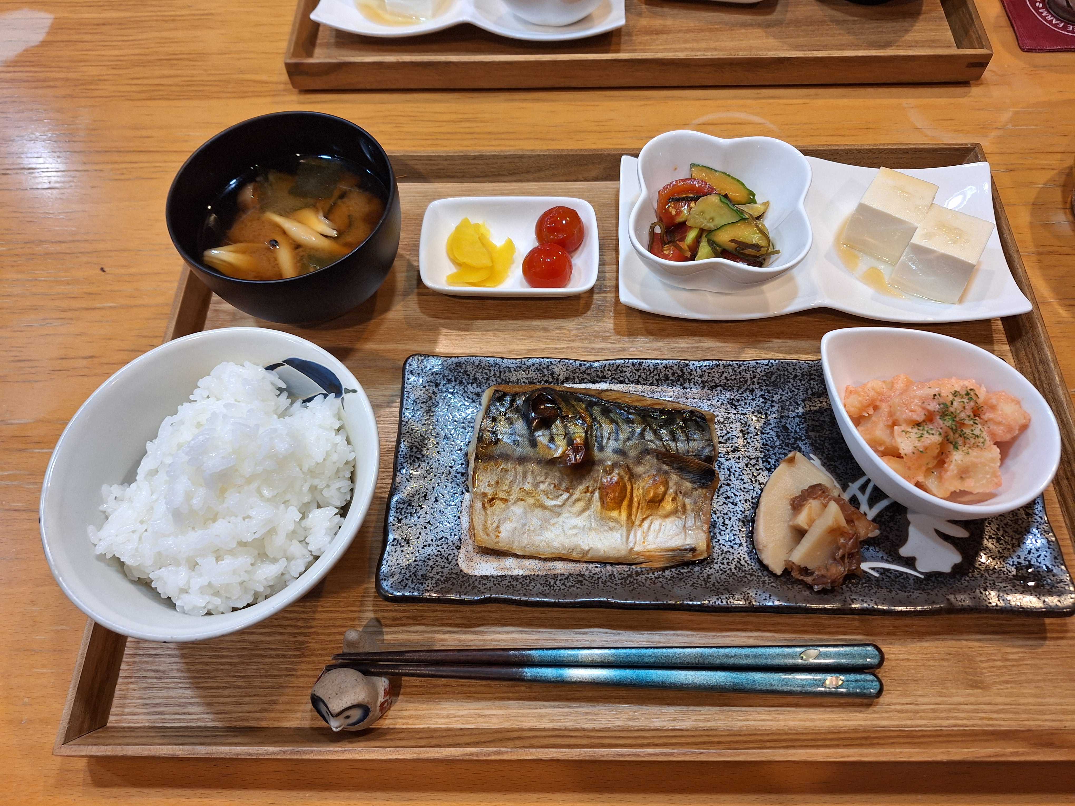 夕食は焼き魚の定番、塩さばで焼き魚定食🥢