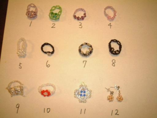 もうすぐ77777のカウントが近づいてきました。とってもお恥ずかしいのですが、私もカウプレやる事にしましたー。いつもお世話になっている皆様にささやかなプレゼントをしたいと思っています。本当は55555でやりたかったのですが、丁度アフェリエイト事例に紹介されてあれよあれよという間に、終わっていました^_^;そんな訳で今回初のカウプレです。参加の対象者は「私のHPの日記リンクして下さっている方」限定ですこんな物でも貰ってやるぞと仰る方は、77777のカウントが出る前までに「参加希望」とお知らせ下さい。日記コメントでも、私書箱でも構いません。11月17日追記:大勢の参加希望ありがとうございます!!昔から応援して下さっている方にも貰って頂きたいと思っていますので、対象者は11月16日迄に日記リンクして下さっている方を対象とさせて頂きます。ご了承下さい77777をゲストや日記リンク以外の方が踏んだ場合には、77778以降でニアミスの方に貰っていただきます。そして、気になるプレゼントはと言うと・・・。とってもお恥ずかしいのですが、私の作ったビーズ作品です。季節外れですみませ~ん。しかも画像が悪くてごめんなさい!! この12個の中から気に入った商品を2つ選んで下さいね。5番と9番は、一番最初の画像にしか載っておりません。指輪のサイズは、11~13号位です。サイズの変更は出来ないですぅ。11番はペンダントトップで12番はピアスです。こんな物で宜しければ是非ご参加下さいね。参加者が多いようでしたら、2番目に近かった方に1つ貰っていただく事にしたいと思います♪参加して下さる方がいるのかしら???誰もいなかったらどうしようとちょっとドキドキしております。追伸:短時間で数人の方の参加がありましたー。 とってもうれしいです(*^_^*) もう少し、プレゼント用の作品を増やせればと検討しています。 プレゼントの人数ももう少し増やしたいと思っています。 ~本日の気になる商品~ ゆうぜんさん 20時から 1980円税込送料込み ↓ 【100時間のまぼろし福袋】 ピカドールさん 23時から ブーフーウースペシャルセット・サイズ100 生チョコサンドの店リーフさんのオープニングキャンペーン 生チョコサンド4個のお試しセット 1,000円 (税込) 送料込!! プログンキング参加中です。本日35位となりました~\(~o~)/←美味しい物見つかった方は1クリックして下さるとうれしいです。