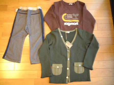 やはり昨晩から熱が出た私。現在38度ですぅ~。。でもあんまりしんどくないんですよね。今息子のお風呂上りのお手入れ準備中に日記UPしています♪ 27日21時スタート!! 多分秒殺になります! ★税込★2005秋Ragmart福袋 オール今期秋物 10000円以上が5250円 今期物が3点でこの値段は超お得♪毎回あっという間に売り切れて買えた試しがありません。。。実は私は先日楽天外のお店で福袋ではなく、3点お試しパック送料無料7000円!!とママ用2点送料無料5000円!!で息子とトレーナーのペアにするべく購入しましたー。(画像が悪くてごめんなさい!!) 息子分130センチ ママ用 ママ用バック トレーナーが色違いでペアで着れるのでうれしいです。私用のカシュクールベストは定価(約4000円)で買おうと思っていたのでちょっとラッキー。ラグマートは130センチまでの展開です。サイズは他のメーカーに比べてやや小さめです。トップスはサイズのマイナス5センチ。パンツはサイズのマイナス10センチ。って感じです。メガネ君は身長105センチで110センチでピッタリ。ラグマートでは120センチだとトップスはピッタリ、パンツはやや小さめなのでちょっと大きめの130センチにしましたー。 福袋に惨敗された方は 残り女の子100センチだけですが・・・。 私の買ったお店が楽天に女の子用だけ販売しています。 ママ用が欲しいわって方は ママ用は去年から毎シーズン買っていますが、細身だったのが少しゆったりサイズになって着たやすくなりました。それでもMサイズぐらいの大きさです。 プログンキング参加中です。本日39位となりました~\(~o~)/←今日の1クリックを宜しくお願いします。。。