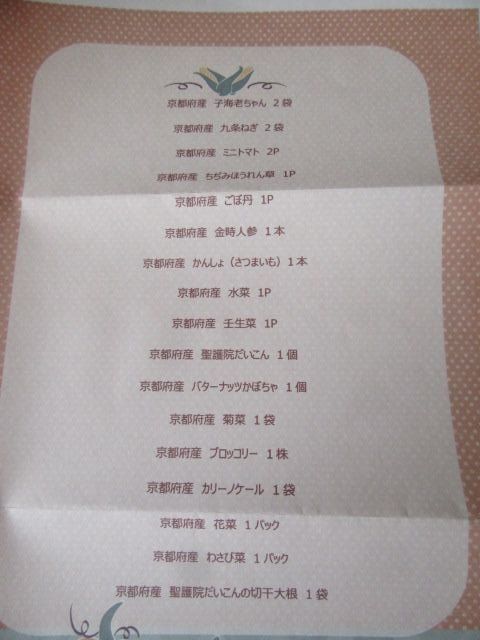 遅くなりましたが、1月中旬に購入した京野菜の卸屋さんの野菜福袋です。私が最後の1個をポチたので、ネタバレどうかなぁと思ったのですが、覚え書きに。今年で2回目の購入。今年も大きな段ボール2つにドーンお品書きはこちら3800円送料込みです。種類も量もタップリ。そして新鮮。京野菜はお高いのになんて量なんでしょう。1月中旬で福袋購入も一段落しお買い物マラソン終了翌日だったので、もういいかなぁって思ったのですがお野菜ならと思い、最後の1個をポチしましたがやはり大満足の内容でした。お味もさすが京野菜ってお味で上品で美味しいお野菜ばかり。1週間は毎日堪能させて頂きました。去年よりも品数が多くて良かったなぁ来年も販売あったら購入したいなって思う大満足の福袋でした現在販売中のお野菜のセット4500円送料込み送料無料】京都中央卸売市場中西青果仲卸直送だから新鮮!京都の伝統の味、心仲卸厳選美味特選京野菜セット5500円送料込み送料無料】京都中央卸売市場中西青果仲卸直送だから新鮮!京都の伝統の味、心仲卸厳選美味特選京野菜セット真心 ギフト 感謝【送料無料】お徳用訳ありB品掘りキズ有り大小混じり京野菜京都仲卸厳選おすすめ生産者限定品京筍たけのこ2kg2本〜15本入(白子たけのこが混じる場合有り色は黒くても美味しい)) 米ぬか、料理レシピ付き お得です。京都のタケノコって食べてみたい。