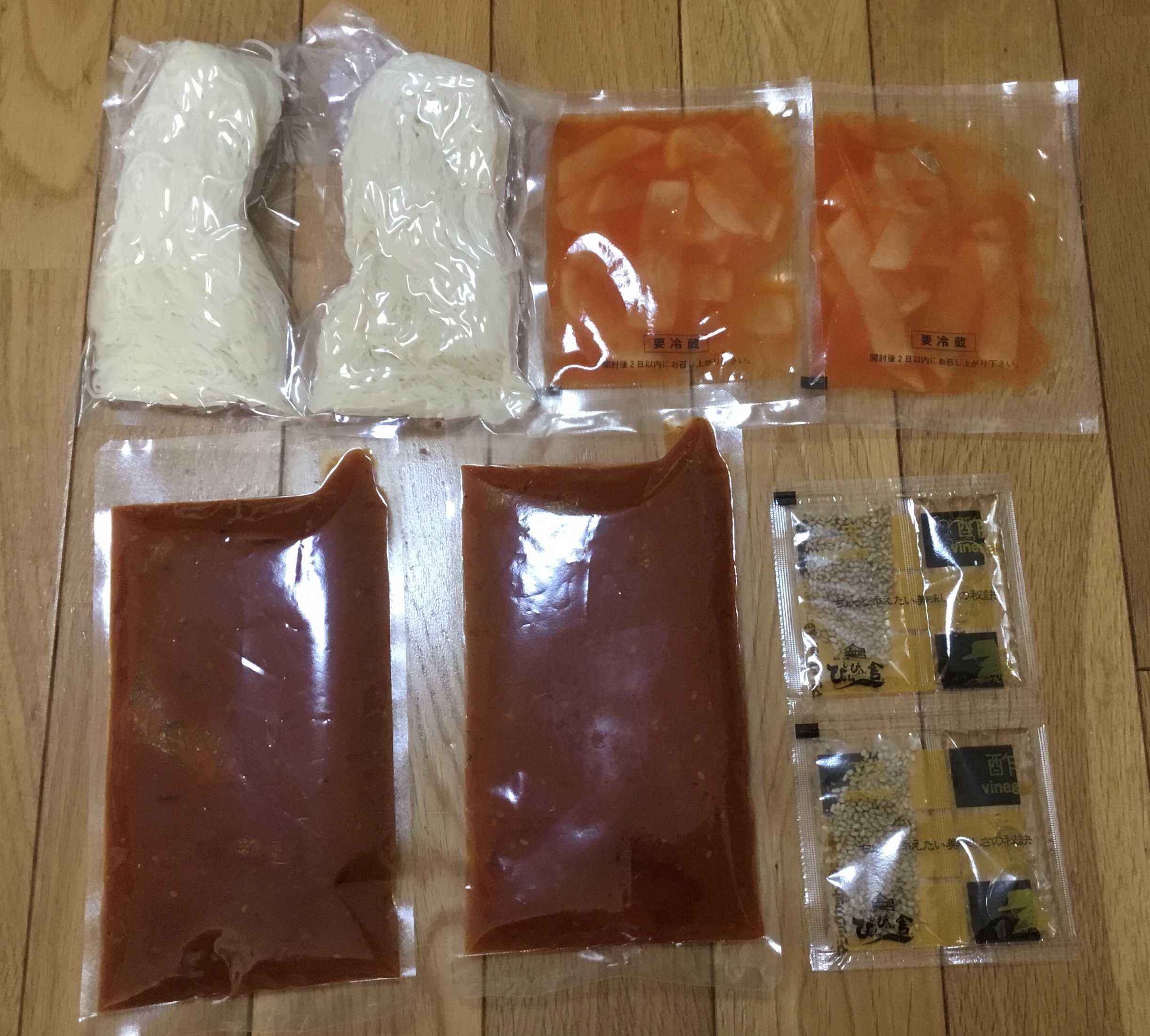 ピビン冷麺の2食セットと合わせて4食分はいっているよ。