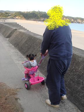 今日は、朝から寒かったけど、お昼からポカポカあったかくなってきましたなので、仕事から帰ってきたぼんちゃんと3人で海まで散歩に行きましたといっても家から車で3分だけど父ちゃん、しっかり押してねとっても仲良しの2人。。。私の影も入ってますねたのちぃぃぃ~~3輪車大好きだから、この笑顔帰りは3人で車まで走りましたマメ大喜びだけど、わたくし、、、息きれて、脱落しました~ この坂、すっごい急な坂なんです。。。そこからぼんちゃんと一気に駆け下りたら。。。こ、こわい、、、マメ、必死にしがみついててわらえました(笑) と、あったかい中でのお散歩はマメも気持ちよく3人でお散歩は楽しかったのか、ずぅ~っときゃぁ~と叫んでました(笑)3人で走ったときも笑ってたし、、、明日も行けるといいなぁ~