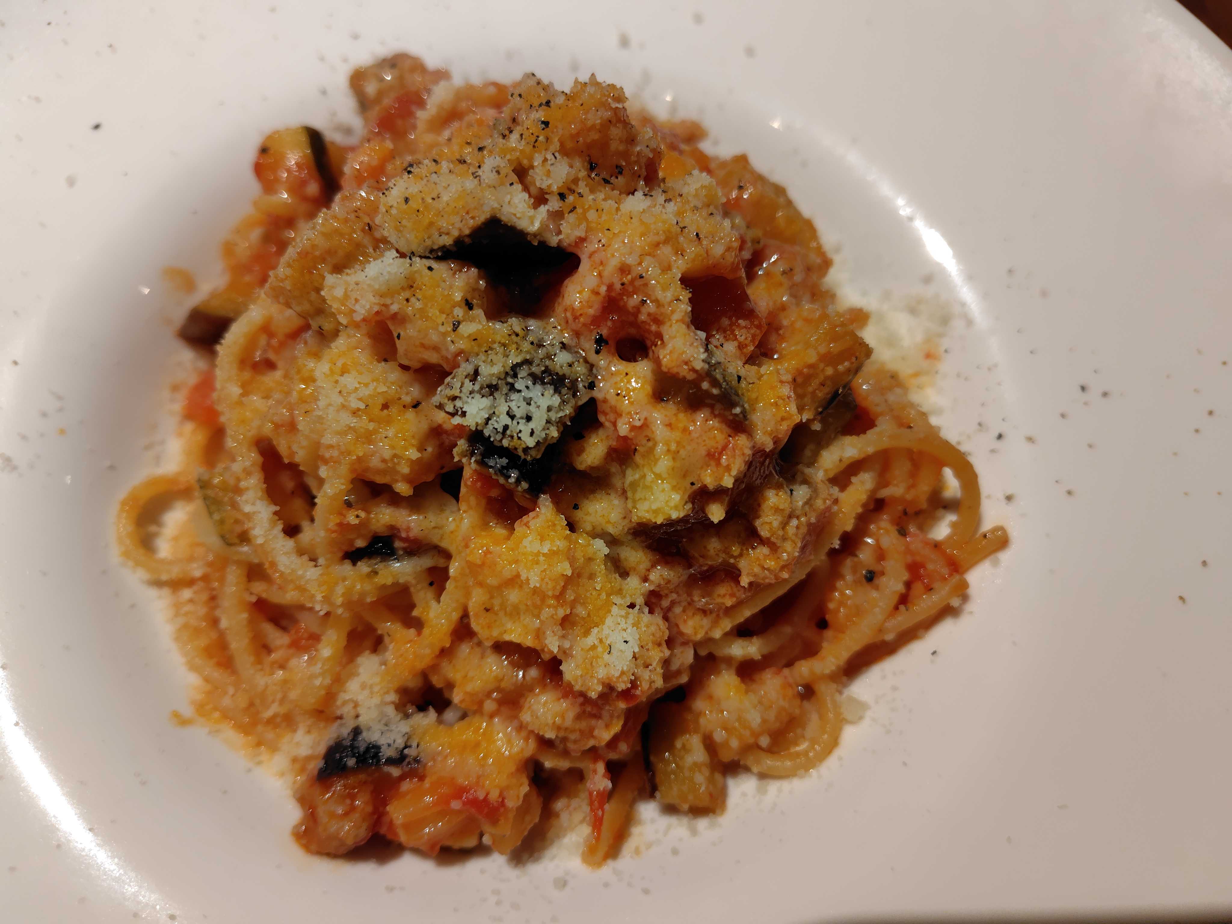 ズッキーニ、ナス、パプリカ、玉ねぎなどの野菜もたっぷりはいってて、チーズの濃厚さも加わって、ボリュームのあるパスタで大満足!