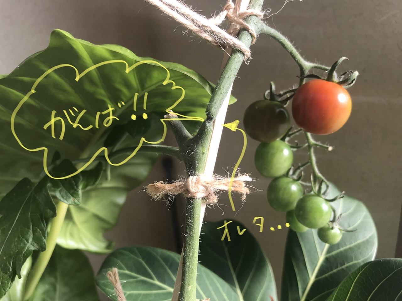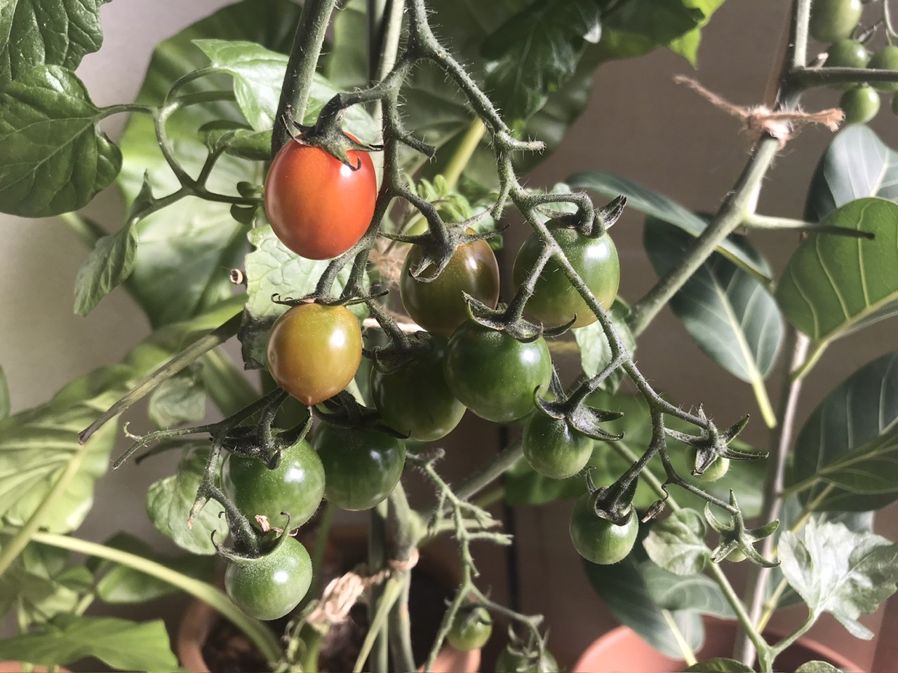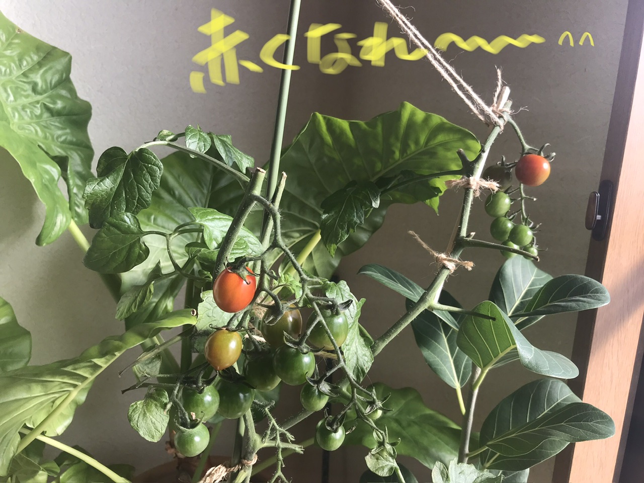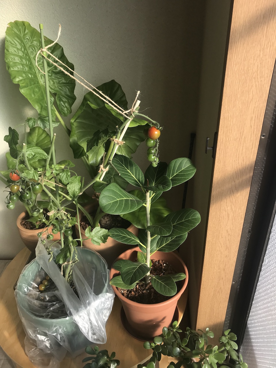 部屋の中が クワズイモ🌱 ミニトマト🌱 金のなる木🌱 サボテン🌵 ゴムの木🌱