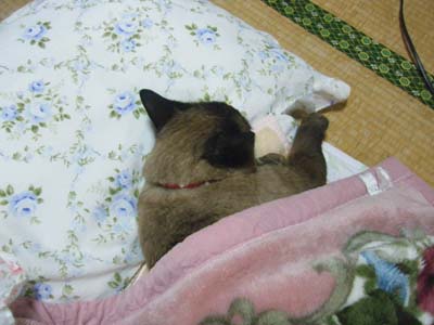 今日はコロッケの狂犬病のワクチン接種のため動物病院の先生に往診にきていただきました。あ。今日の日記、文章だらけで長いです(汗)しかも、私の思ってることだらだらと書くのでお時間ない方は飛ばしてください。実はコロッケ、齢16歳にして一度も病院にかかったことがないの。最近弱ってはきているけどほんとに元気な子だったから。でも今は足がよぼよぼで、横になった態勢から起き上がるのが非常につらそうで・・散歩も家の周りだけ。だってそれぐらいが限界だから。そんな状態で、もちろん狂犬病予防のためとはいえ10月の集合ワクチンにはもちろん行けず。病院へ連れて行くにもなんだか車に乗せるのもかわいそうで。でもご近所には小さい子供もいるし、さーもいるし・・ということで、悩みに悩んだ末、往診にきてもらえないかいつもきらがお世話になっている動物病院へ電話してみました。私が住んでいるところは田舎で、牛や豚の家畜も扱っている病院が多いと聞いていたので、往診もお金を払えばやってもらえるかなと思っていたのですが今回、先生にしてはめずらしく強く断られました・・「他の病院へ行ってくれ」との一点張りで(汗)次は実家に一番近い動物病院へ電話したのですが狂犬病ワクチン接種だけの往診はしていないらしく三種混合&フィラリア投与も合わせてならいいとのことだったんですけど、三種を今更。。と思い断念。先生方の気持ちもすごくわかるんです。忙しいのに狂犬病ワクチンだけの往診などしたら、たいしたお金にはならず、その往診中の患畜はみれず・・ということなんだから。。しかし、私も正直困り果てていました。どうしたもんかと・・・ダメ元で割と新しくできたきさぬき動物病院というところに最後に電話してみました。すると先生があっさりとOKしてくださったじゃないですか!!なんだか私、ほんとに涙が出そうでした・・いや、ちょっと出ていたかもしんない・・。もう感謝の気持ちでいっぱいで。そして今日の午前中、先生が時間通り来て下さってワクチン接種してくださいました。ひきずっている後ろ足のこと(床ずれのようなものだそうです)排尿のこと。寝床のこと。いろいろ教えて下さいました。それなのに先生、出張費も手数料もとらずワクチン代だけだったんですよ!!「近くだからいいんじゃないですか」とおっしゃって。。なんて欲のない先生なんでしょう・・なんだか心洗われる気がしました。先生はお若いさわやかなハンサムさんだったのです。それもあるのかな、やっぱ(笑)そして、出張費を請求されないと思わなくて、何もお礼とか準備してなかった私。本当に申し訳ない・・何か次にお礼をしないと!!きらをいつも診て下さる動物病院とは初代みやっこからすると10年のおつきあいです・・病気やけがばかりするきらにいたってはもうその先生には頭があがらないぐらいお世話になりました。お休みの日にも快く処置やお見舞いもさせていただきました。先生へのご恩は忘れていないけれど、今回のことでちょっぴり残念な気持ちがぬぐいきれないのです・・だから、思いきってこれからは病院かえてみようかなと思ったり。。なので、きさぬき先生!これからきらをどうかよろしくお願いします!・・ってまだ、一度も病院へは行ってないんだけど(汗)次のきららのワクチンの時に病院デビューします!先生、今日は本当にありがとうございました♪(私、本気で先生が神様に見えましたよ。。涙)きさぬき動物病院のHP寒さがコロッケの体によくないとの先生のご助言でしたのでコロッケちゃんにマットを買ってみた。寝てくれるといいな。もう今までも十分頑張ってるけどまだまだ頑張れそうなら少しでも長生きしておくれ、コロッケちゃん!チャーミーキティにも一応ごあいさつを・・(笑)キティさん相変わらず美人♪本日のきららさん。昨日今日とあったかいのでこたつから出ていつもの段ボール箱で寝ています。本日のお弁当。