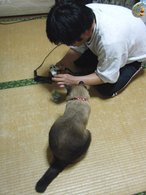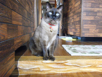 クリスマス雑貨をいろいろ出そうと思ったら結構壊れてるものが多くて(汗)修理を旦那にお願いしたところ・・お手伝いしたそうなきららさんでした(笑)日向でまったりきららさん。