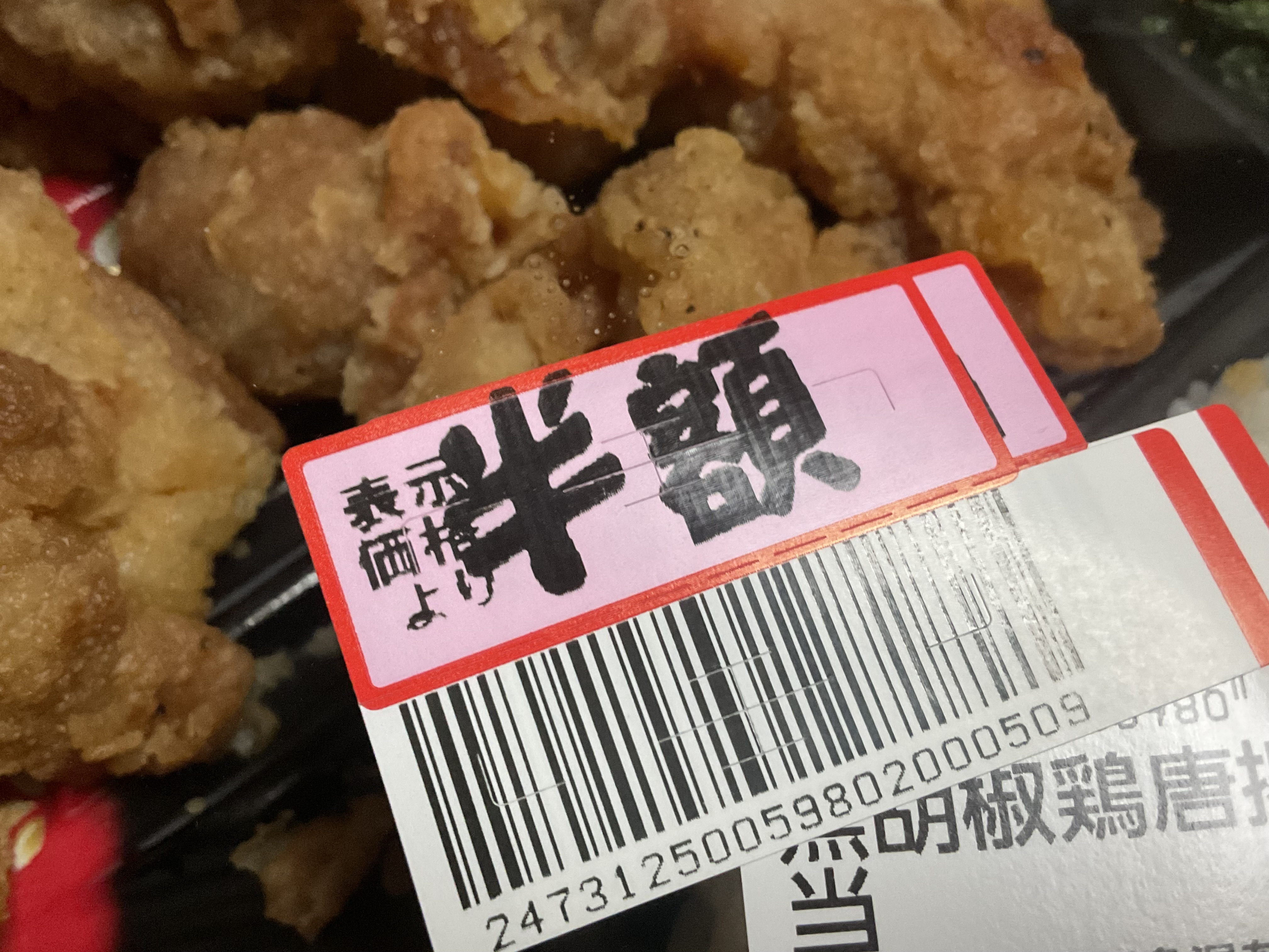 おばんです今日は、スマホを買いに行ったら、えらい時間がかかってしまい、しゃあないので、スーパーの半額弁当に半額シールよありがとう😊唐揚げ弁当ですでも、本当は、幕内🍱が好きですまあ、自分で作らなくて済んだので、ヨシとしますごちそうさん