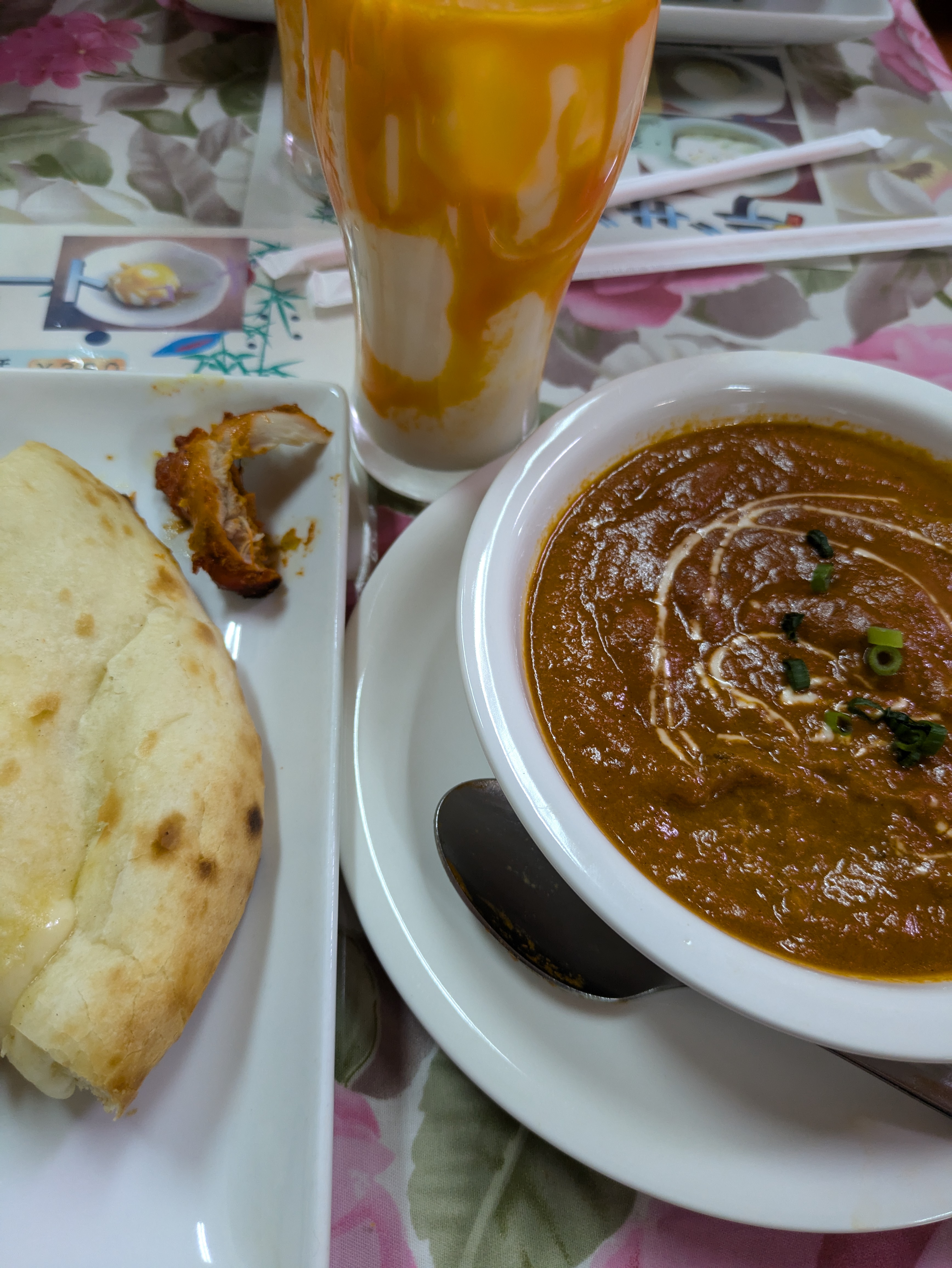 どもですやっと、スマホで写真を入れることができたのですが、それはいいのですが、なんか変な場所にくっついてしまったわワハハ😆なかなか難しい😓で、今日は疲れがたまっていたのか、午後からコタツでグースカ寝てしまい、気がついたら夕方☀️🌆かいものにもいってなくて、しょうがないので、急遽外食にまあ、本当は一泊旅行に行くつもりが、用事ができて行けなくなったので、多少、お金使ってもぃいということにしてまおうからのカレーですサラダに、🥗スープ マンゴーラッシーつきですとっても美味しゅうございました♪ただ、明日、カレーにできないのが…どうしようかな