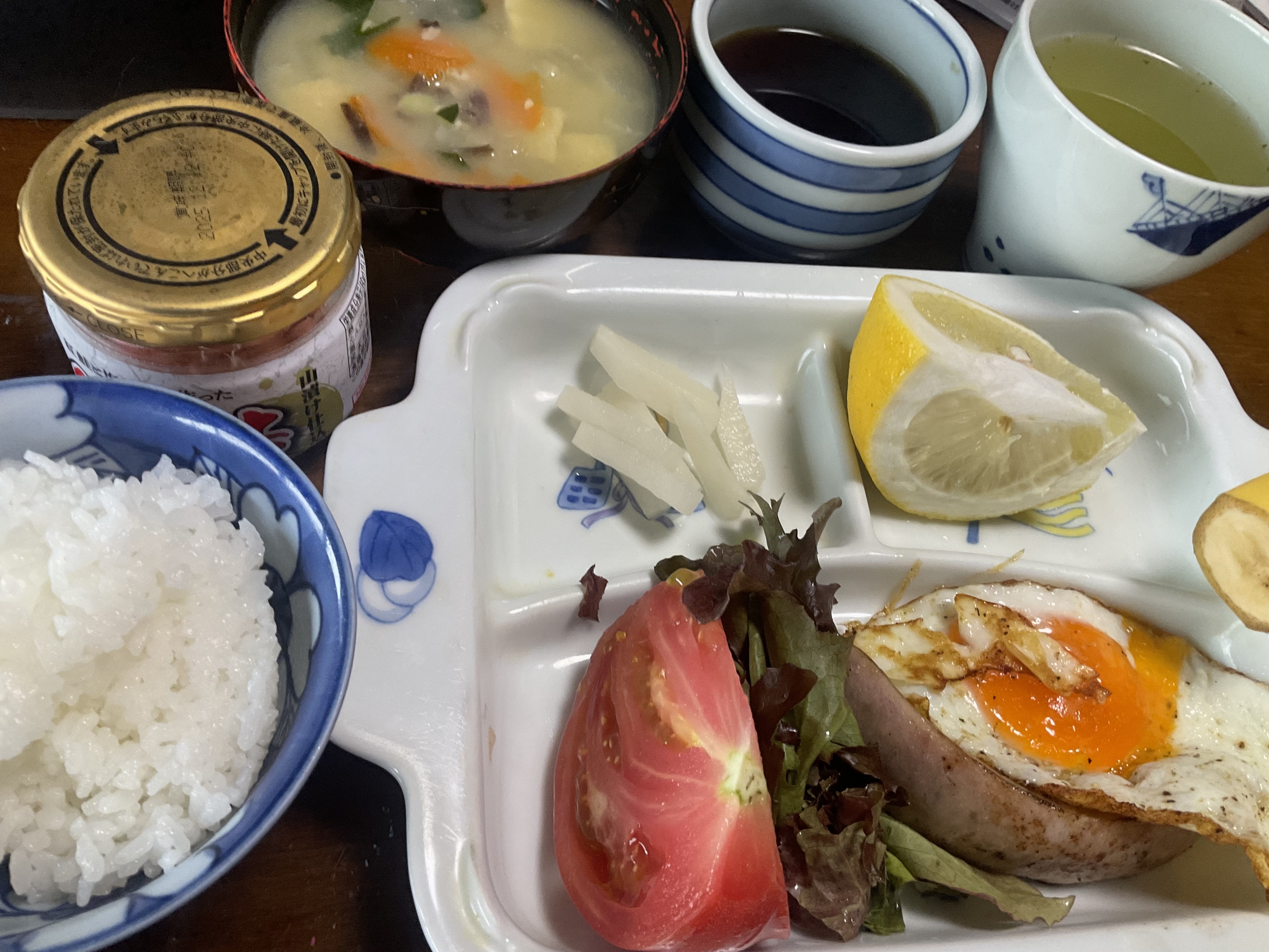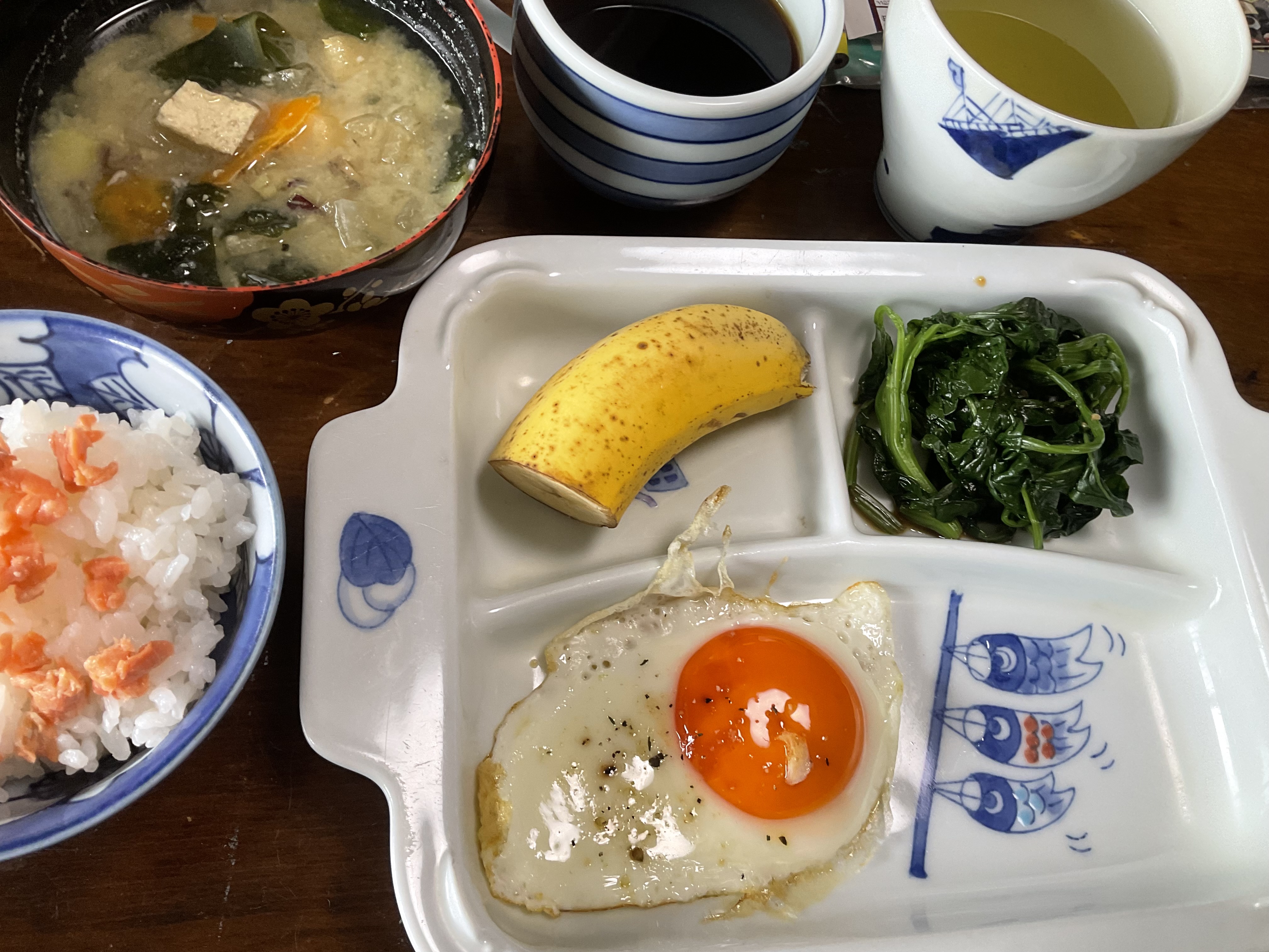 おはようございます🌞昨日、なんだか寝付けなくて…やっと寝たと思って起きたら、9時あらら朝ごはんができてましためちゃラッキー✌️目玉焼き🍳 味噌汁 ほうれん草土日はほんとにやる気でんくて、朝も起きる気力なし家の周りは草だらけなので、草取らないといけないんですけどね💦ごちそうさん