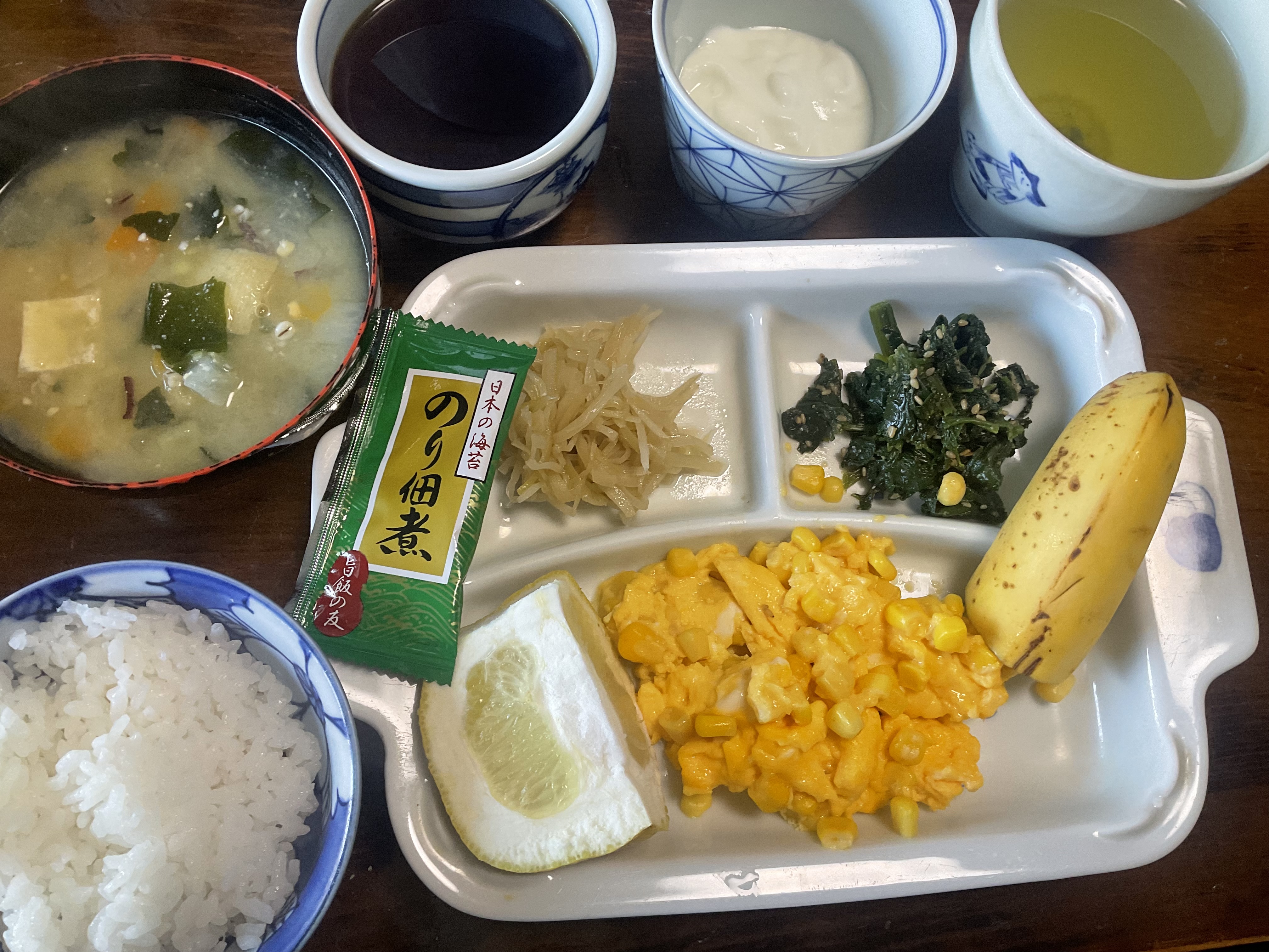 どもです今日は朝目が覚めなくて、コーン入りスクランブルエッグを作ったのみです味噌汁はGさま大根の皮のきんぴらとほうれん草の胡麻和えは作りおきですヨーグルトはイオンで半額ゲットなんか珍しいメーカーで、900円くらいのが、半額になっていたので、迷った挙句購入900円のヨーグルトとか、半額でない限り絶対買わないと思ったのです海苔の佃煮もおいしくいただきましたごちそうさん