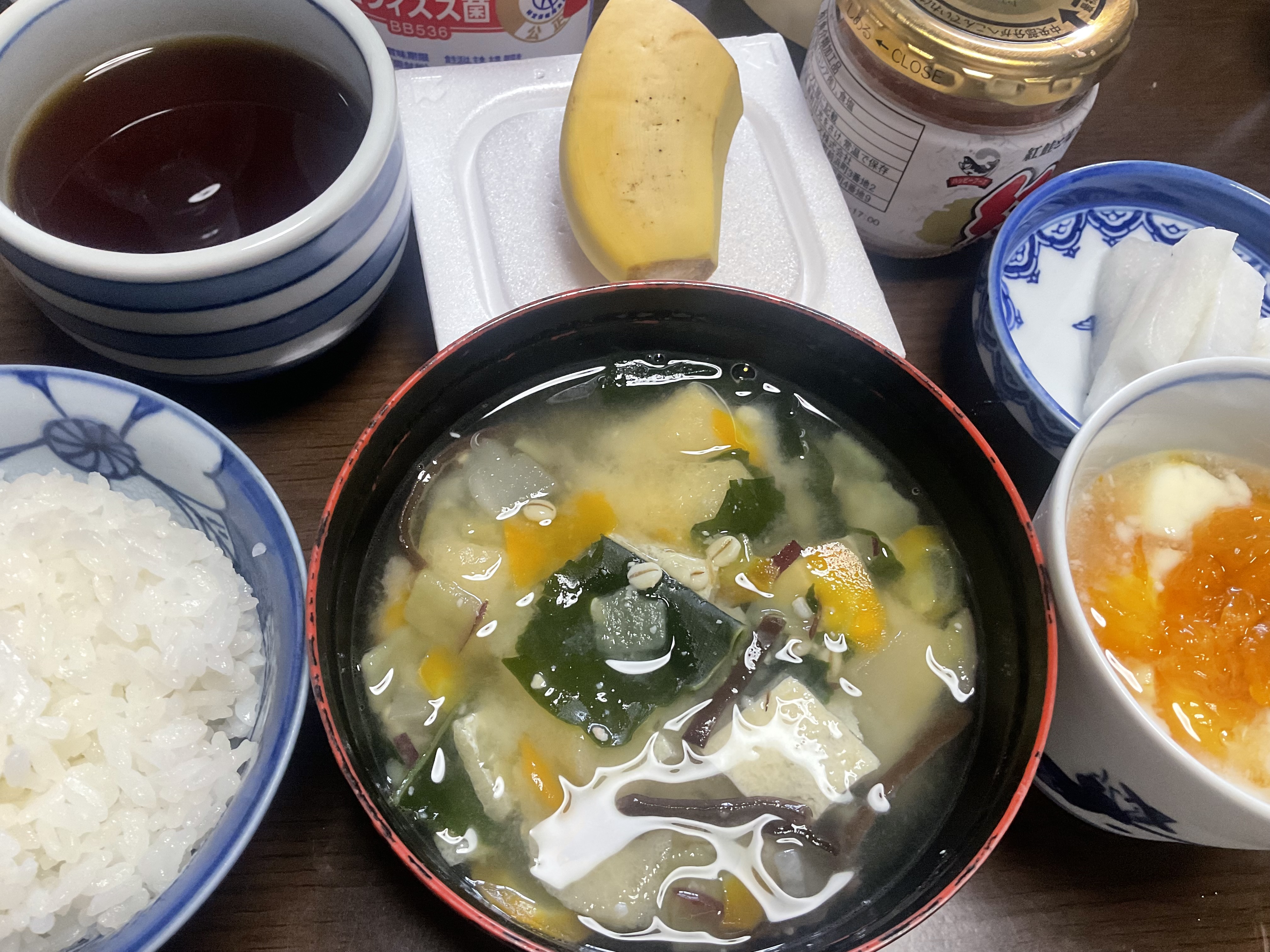おはようございます😃今日は孫ちんの遠足です〜というても、特に朝ごはんにかわりなしというか、いつもより質素かもね味噌汁が中心にありますものあとは、納豆、ヨーグルトなどさっさと食べてしまわねば〜〜ごちそうさん