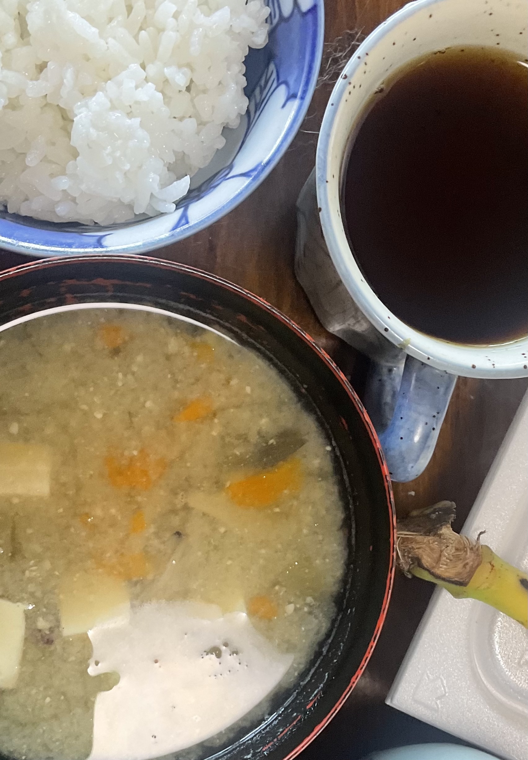 おはようございます☀暑いですねえ🥵昨晩は、寒くてこたつに入っていただにもう、この気候、どうなってんの⁉️そうそう、この頃、孫ちんらが2日目のカレーを食べなくなったので、ひたすら食べ続けていますの3日目のカレー 目玉焼き🍳 納豆 味噌汁 酢漬けカレーのお肉はひき肉です安くあげようとすると、必ずひき肉になってしまうのそういえば、叔母がお肉食べずに栄養失調になったことがあったなあ節約も必要だけど、食の質は落とせないよなあ何ともかんともごちそうさん