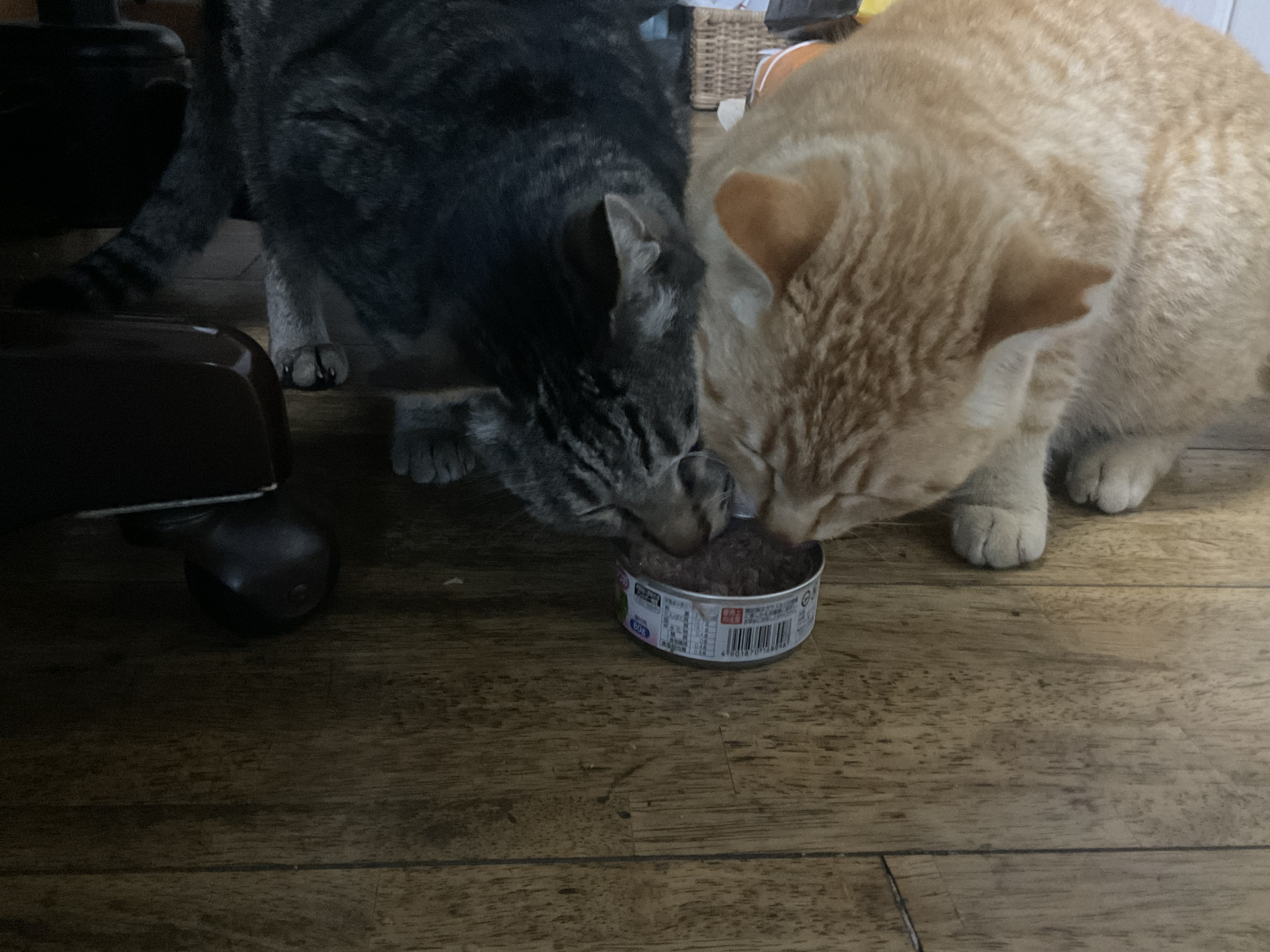 どもです子どものとこから引き取って来た缶詰🐟賞味期限切れてるんですけど……めちゃくちゃ食いつきいいですにゃんにゃんにゃーん🐈⬛🐈