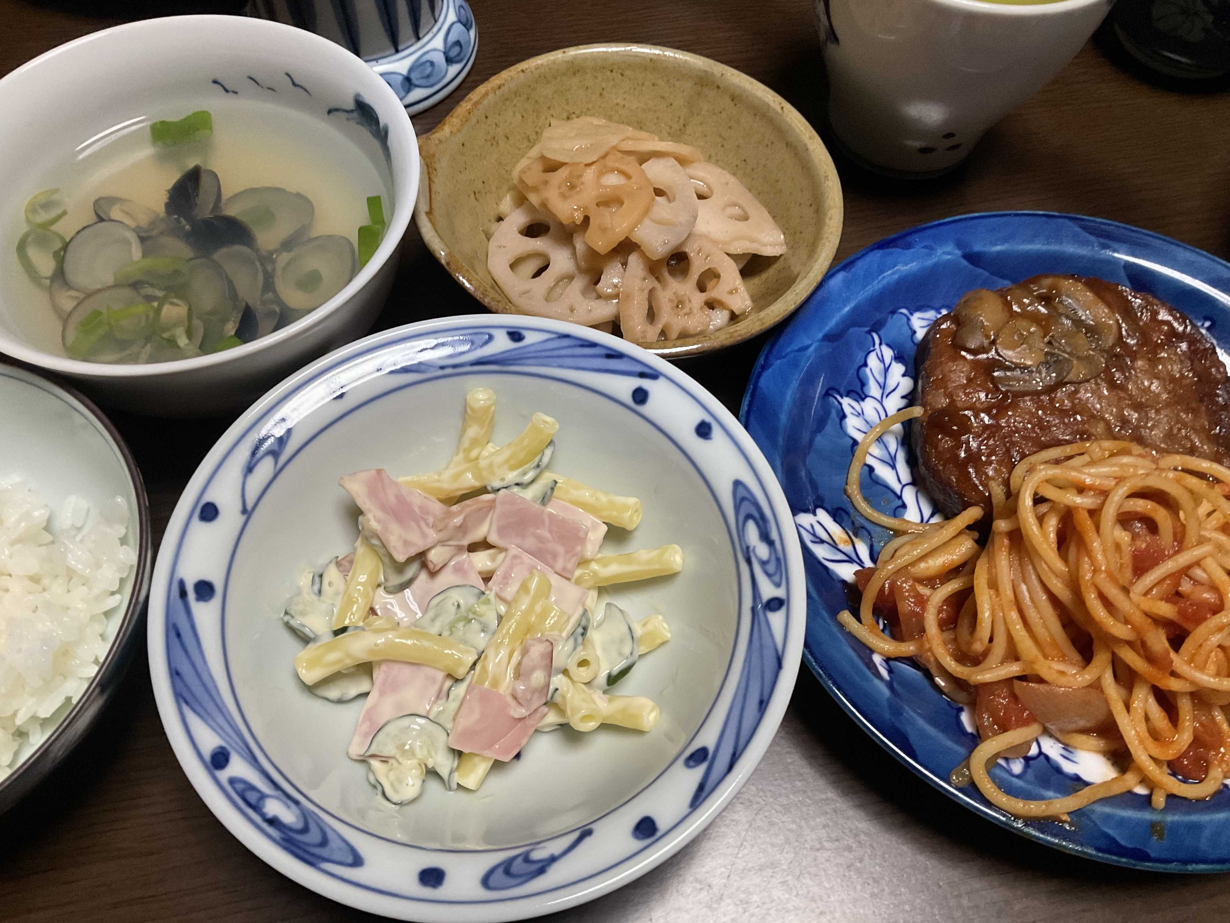 おばんです今日はちょっとお出かけしたので、手抜きです割引シールのハンバーグを発見💡ーーこれは、買うやろシジミも半額シールでゲットレンコンにマカロニサラダパスタのソースは、先週のチキンのトマト煮の残りをとっておいたのを利用孫ちんも食べたので、これはありですねレンコンは道の駅でお安くゲットなかなか食費、たいへんですわ