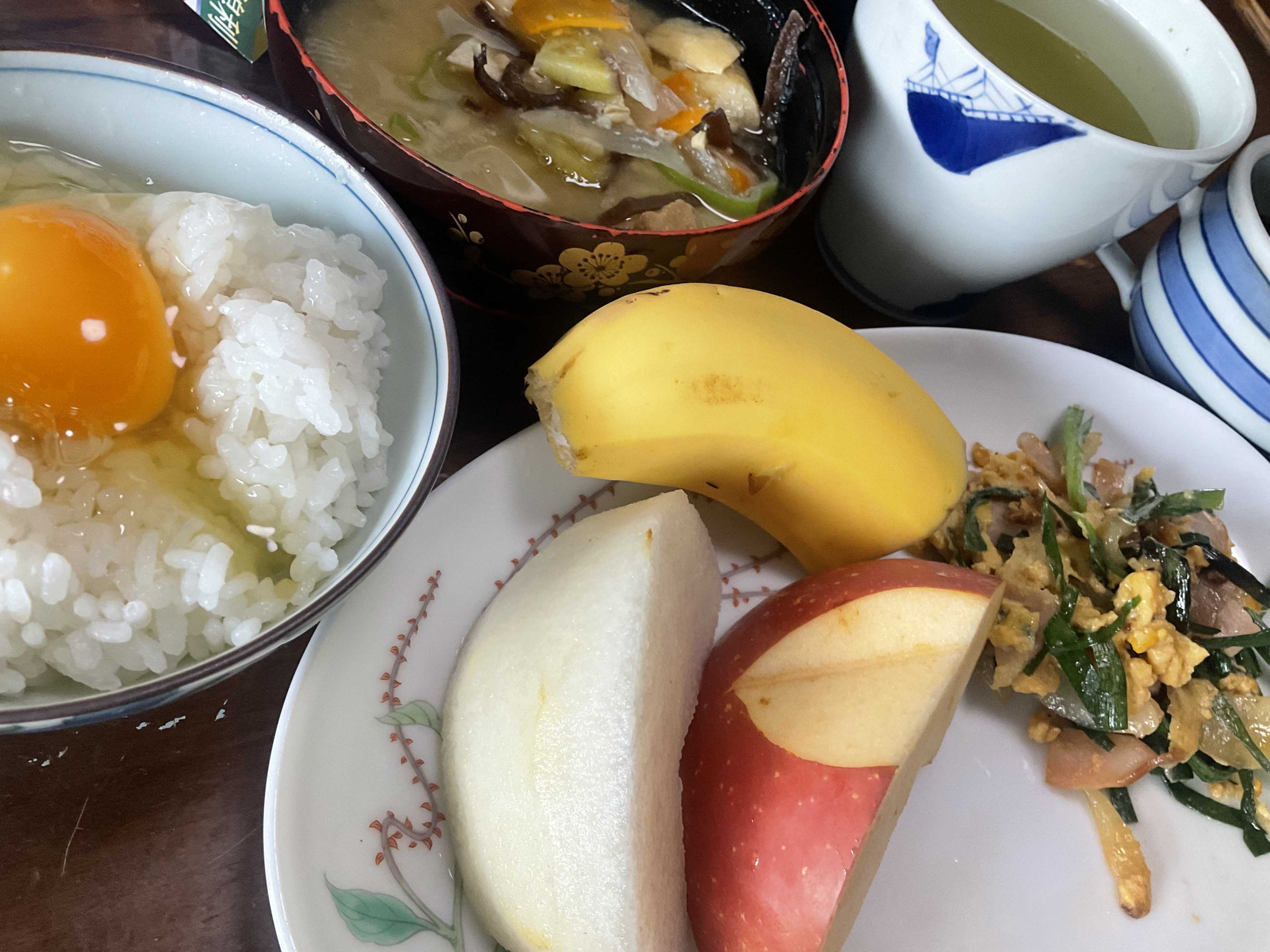 どもですこの2週間ほど毎日歩いていたのですが、今日は雨☔雨に濡れるとすぐ風邪をひくので、今日は諦め健康のために歩いているのに、風邪ひいたら本末転倒ですからねということにしておこう歩くと言っても、僅か2500歩ほどです笑ってください卵かけごはんです あとはニラ卵 味噌汁りんご🍎が傷み出してますさっさと食べねばでも、こんな時に限って、梨をもらっちゃったのよねウマウマといただきましたごちそうさん