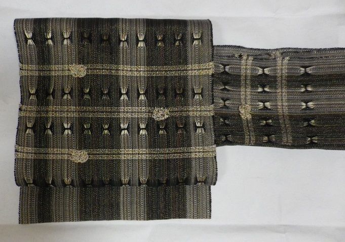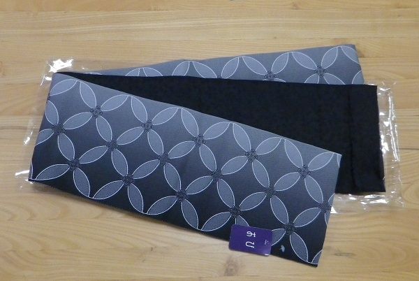 地元のなじみの呉服屋さんからイベント案内がありました。今回、お店の80周年で今まで購入してくれたお客様にお礼の浴衣or半幅帯のプレゼントを用意してるとのこと。でも、こういうイベント苦手なんですよね。呉服屋さんのイベントっていいイメージなくて、私も根負けして購入した経験ありですから(この話はまた今度)今回も一度は断ったんですけど、担当さんが「今回はお店の80周年で、日頃のお礼ですから遠慮せずに是非いらしてください」って。まあ、以前このお店で着物4枚仕立てましたからちょっとくらいいいのかなぁと、思い切って行ってきました。そしてGetしたのがこれ↓ 表は七宝柄で裏には桜の地模様の黒い半巾帯。黒なので地味ですが、結構使い勝手がいいかもと思いました。プレゼントは、半巾帯の山から選ぶんですが私が行ったときに先客がおひとりいらして、その方がその帯の山をひっくり返すようにして選んでいるのにちょっとびっくりしました。ひととおり山を漁ってひとつに決めて、ささっと帰って行かれましたよまあ、その方の勢いに紛れて私もさっと帰ることができたんですけど世の中にはすごい強者がいるもんですね。