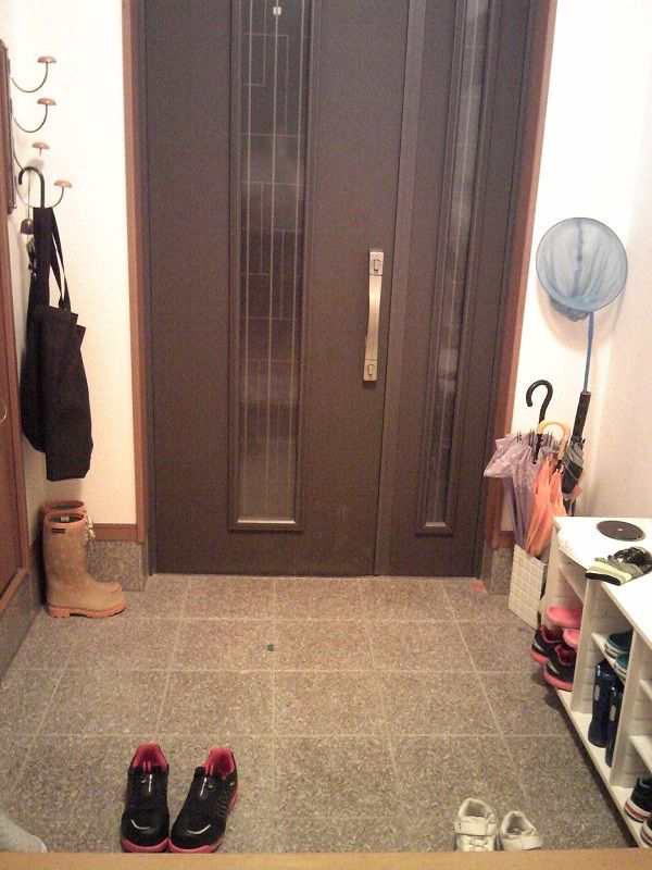 今日は、ちびさんの家庭訪問担任は4月に他市から来たばかりの先生で、どんな先生かわからないのでちょっと緊張します。とりあえず、玄関掃除しなくちゃ!と朝から頑張りましたビフォー アフター ビフォー:長靴が出しっぱなしになっていますね 子供の靴に私の靴、旦那さんの作業靴も出ています。 傘立てはいっぱいで、虫取り網まで。 あっ、CDはツバメ除けに取り付けてたものが落ちてそのまま半年以上 我ながら恐ろしい。アフター:まあまあ、何とか形になったでしょうか? 玄関ドアは表面がざらざらしてて水拭きしても綺麗にならないから嫌いなんです 宝くじ当たったら一番にリフォームしたい!(当たらないけど) というか、これを維持できるように頑張ろうえっと、家庭訪問は滞在時間5分~10分って時間の制約あるし、とても家の中までお見せできないのでとりあえず玄関まで。あとは座布団とお茶菓子ですねあっ、もう30分くらいしかない