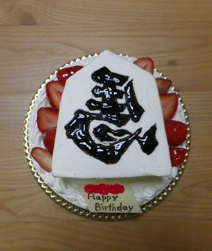 昨日は長男の18歳の誕生日でした。18年前の昨日の朝、長い長い陣痛に耐え抜きやっと生まれてきてくれたんです。実際、二日間も陣痛に苦しんで食事も睡眠も取れなくて急きょ帝王切開に変更になって看護士さんたちが麻酔室のの準備し始めたんです。でもね、お腹の中に居てもちゃんと声を聞いてるんですよね。私が「赤ちゃんなかなか出てきてくれないから、お母さんお腹切らなくちゃいけなくなったんだよ。お父さんもお母さんも待ってるから早く出てきてくれないかな?」ってお腹に向かって言ったら、その後すぐに頭が出てきて慌てて看護士さんが手術の支度してる先生を呼びに行ったりバタバタとしてやっと出てきてくれた長男。それがもう18歳だなんて、感慨深いですね~。後で、本人に「出産の時、大変だったのよ」って言ったら本人いわく「だって、俺は妹と弟のために一生懸命道を作ってたんだから仕方ないよ」ですって。うんうん、確かにって納得しちゃいました(笑)いいお兄ちゃんです今年は受験生で大変だけど、応援しています!そういえば、以前のブログで言っていた誕生日ケーキ実は、いつもお願いしてるケーキ屋さんには形が難しくて注文が込み合ってるから無理ですって断られてしまって急きょ、別のケーキ屋さんにお願いして作ってもらうことができました。(ロアールさんに感謝!)当初の予定とは違って丸ケーキの上に駒になりましたが、ちゃんとメッセージプレートも乗せてもらうことができたし駒の再現度も高くて興奮しちゃいました何より、長男がすごく喜んでくれたので良かったです怒られるかとも思ったプレゼントも喜んでくれて、みんなHAPPYな誕生日になりました将棋駒の特産地天童市発祥の縁起物「左馬」です。 丸ケーキの上に駒が乗っているので、結構高さがあります。ちなみに、切るとこんな感じ。なんか、アルパカみたいと思うのは気のせい?(笑)ちなみに、「左馬」が縁起物とされるのは馬は元来左から乗るものなので、右から乗るとつまづいて転ぶという習性をもっており、そのことから左馬は長い人生をつまづくことなく過ごすことができ、昔から福を招くめでたいもので商売繁盛の守り駒となっています。そのほか・・○ 馬の字が逆に書かれていることから、ウマの反対はマウ(舞う)であり、古来、舞いはめでたい席で催されることから縁起の良い招福駒である。○ 左馬の下の部分が財布のきんちゃくの形をしており、口がよく締まって入ったお金が散逸しないことから富のシンボルである。○ 普通馬は人に引かれるものであるが、逆に馬が人を引いてくる(招き入れる)ということから、客商売にとって千客万来の招福駒である。○ 馬は元来左から乗るものであるということから、左馬は乗馬をシンボルとするもので、これを持つ者は競馬に強いという。 などのいわれがあります。