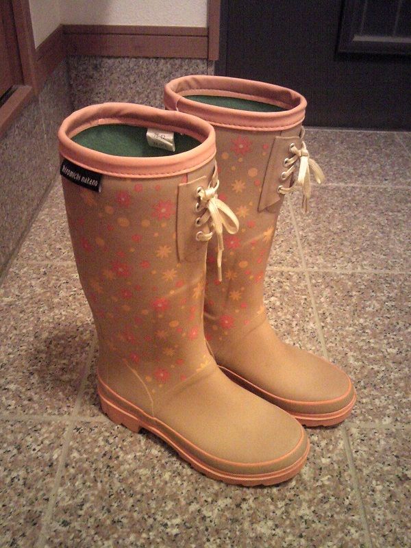 家庭訪問のために玄関の写真を撮りましたが、その時放置してあった長靴は私ダメ子のですお気に入りで随分前に楽天で購入したものですが、今、探すと見当たらない。デザインが古いのかな?にしても、長靴って使ってすぐに靴箱に入れるとカビそうで、ついつい置きっぱなしに。今朝、片付けたばかりだけど明日は一日雨らしい明日は買い物に出る日だから履いて出ようかな・・・足元濡れるのって何気に不快ですが、長靴あると気にならないんですよね~せっかく片付けたのにね、お天気のせいだよね。そうそう、今年買った姫さんの部活用長靴もデザインがいいそれがこちら↓ブーツ レインシューズ 【リンネル 掲載】スマートなデザインで、晴れの日も履きたい サイドゴア レインシューズ!レディース 長靴 婦人靴 ラバー ショートブーツ 無地 雨具 レイングッズ 梅雨 雪 ◆サイドゴア ショート レインブーツ本当は白がよかったんですけど、部活用なので汚れが目立たないようにネイビーを買いました。それでもとっても可愛らしい学校で友達に褒められたらしいです