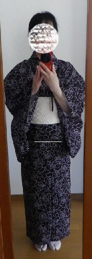 気が早いかもしれませんが、浴衣を着たくて仕方ありません着物は今の季節なら単衣ですよね。浴衣は言ってみれば単衣なのですから、今の時期に着てもいいんじゃないかと思ったりします。あっ、もちろん長襦袢は必要だとは思いますけどね。今週は着付け教室がないので、先日マラソンの時に購入した浴衣を練習がてら着てしまいましたフリーサイズなのでこつぶ女子には随分と大きい。なので、おはしょり部分を縫ってしまおうかとも考えいるところ。↓ 写真の白ラインがおはしょりの位置、ちょっとバランスが悪いですよね 今日は変わり織りの半幅帯を使ったんですが、柔らかいのに慣れてなくて形がうまく決まらない。あえて長く垂らしてみたり、小さくまとめてみたり。まだまだ研究の余地ありですね。ちなみに今日、使った物は全部で9点。「浴衣、半幅帯、麻の長襦袢、ステテコ、クリップ付きサッシュ×2、ゴムベルト、半衿、足袋」今回、長襦袢は衿を直したばかりで次回の和裁教室で先生に見てもらいたくて、半衿は縫い付けずに簡単にクリップで止めて使いました。なので、えり芯も使ってません。ゆる~く着るため、帯板も使いませんでした。