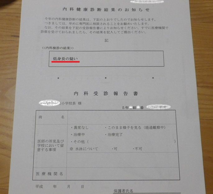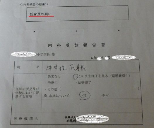 病院に行ってきました。身長と体重を測って、先生とお話。「もう1年様子を見ましょう」となりました。なので、検査も受けなくて済みました。あとは、診断書を学校に出すだけ。とりあえず安心というか、ひと段落です。