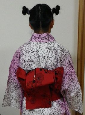 今日は地区のお祭りでした。と同時に、地元の花火大会でした。ちびさんは、結局あれから熱が上がったのでお祭りには行けずさすがの本人も毎度のことなので、諦めてましたがやっぱりちょっと可哀想でした。前売り券を買っていたので、旦那さんに頼んでフランクフルトやかき氷を持って帰ってもらいました。姫ちゃんは従妹と一緒に花火大会に行くというので近くまで車で連れて行きましたが、あれだけ嫌がっていた浴衣を直前になって着ていくと言い出したので慌てて着せました。夕方、雨がぱらついたので帯は正絹をやめてポリエステルにしました。準備不足でバタバタと慌ただしかったです帰りも迎えに行ったものの、すごい人で待ち合わせ場所で1時間も待ちました。私の方が疲れてしまいましたが、自分が着れなかった分、姫ちゃんに着せることができてちょっとうれしかったです
