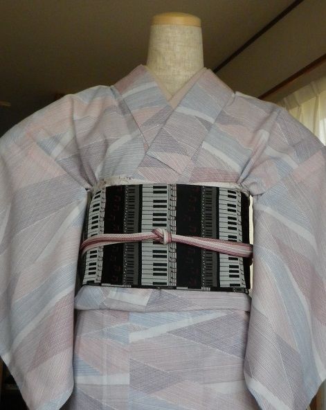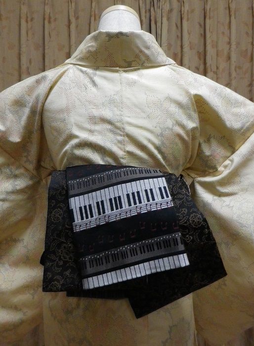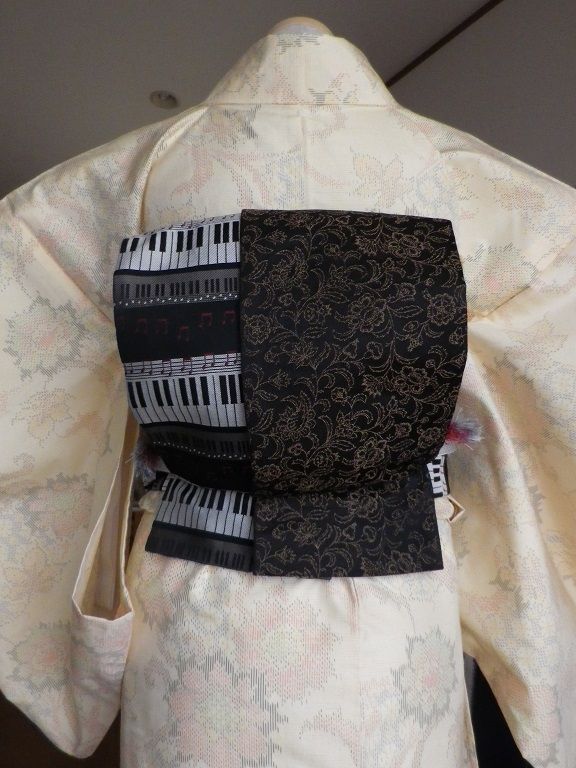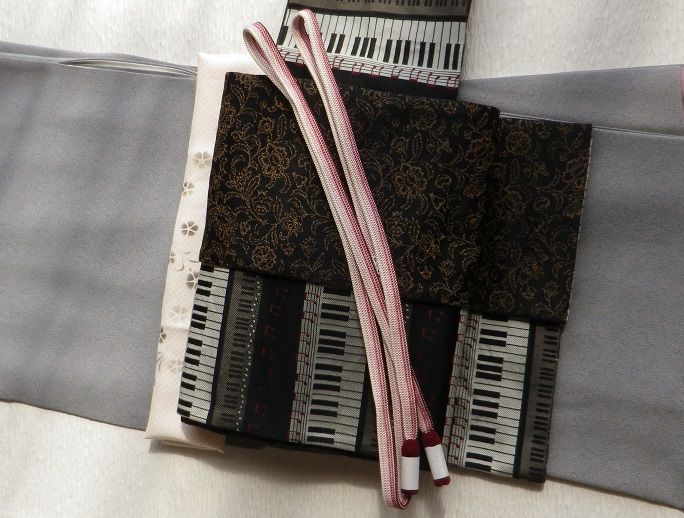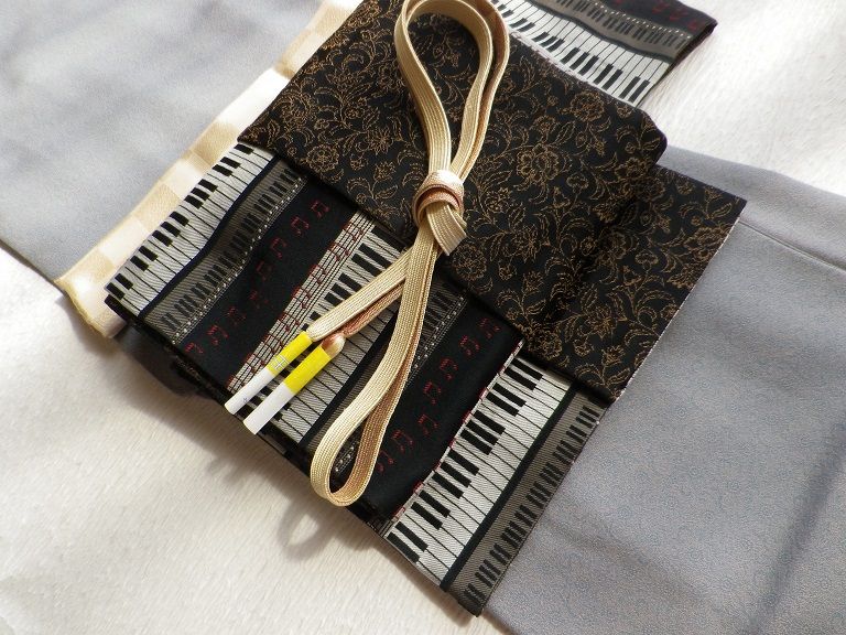 来月、吹奏楽のコンサートに行く予定で着物着て行こうかなぁと計画中それで、何となく前から気になっていた帯を購入。鍵盤柄ですとりあえず、ぽてこさんで練習 帯結びに使用したもの:帯板、半幅帯、帯枕、帯揚げ、帯締め半幅でお太鼓風にしました。リバーシブルの帯なので両面使ってみましたが、どうでしょう?写真が暗いですが、前はこんな感じ↓ この帯には違う帯締めがいいかもしれませんね。コンサートに締める帯はこれで良しとして、まだ着物を決めてなくて何を着るか考え中です半幅帯なので、紬 or 小紋でしょうか?10月なので袷を着る時期ですが、まだ暑いかなぁ?帯結びに使用したもの:帯板、半幅帯、帯枕、帯揚げ、帯締めそれとも夕方なので、袷がちょうどいいのかなぁとか迷うことばかり日頃から着物で過ごしている方なら、ちょうどいい塩梅というのをご存じなのでしょうけど。私は、子どもの行事と着付け教室、あとは年に何回か着るくらいなので、わからないことだらけでいろいろ悩みますもう少し時間があるので、着物と帯締めじっくりと考えてみます。