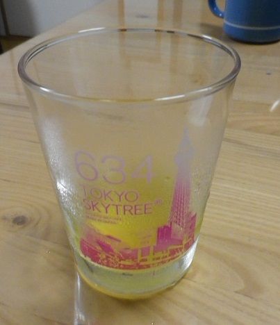 長男が修学旅行で東京に行ったのは昨年12月のこと。その時のお土産にグラスを買って帰ってくれたのですが、寒い時期だったので暖かくなってから使おうねって大事にしまっていました。が、気づけばもう9月、朝晩は涼しくなり夏を通り過ぎてもう秋慌ててグラスを出しました冷たい飲み物を入れると、スカイツリーのイラストの色が変わるんです。使い始めると、姫ちゃんもちびさんも気に入ったようでそればかり使っています中の飲み物が少なくなってくると、冷えてるところとそうでないところにむらができて何だか幻想的な雰囲気です楽天で同じようなのを探してみましたが、見つかりませんでした。きっと、スカイツリーに行かないと買えない限定品なんですね。特殊な塗料が使われていて食洗機には入れられないし、結構大きくいつもグラスを収納している引き出しに入らない大きさで困ったなぁなんて思ったりもしていました。(長男、ごめんね)が、家族みんなが楽しく使えてるので結果オーライです。今は、仮置き状態の収納ですがこれを機に食器棚の収納を見直すことにします。