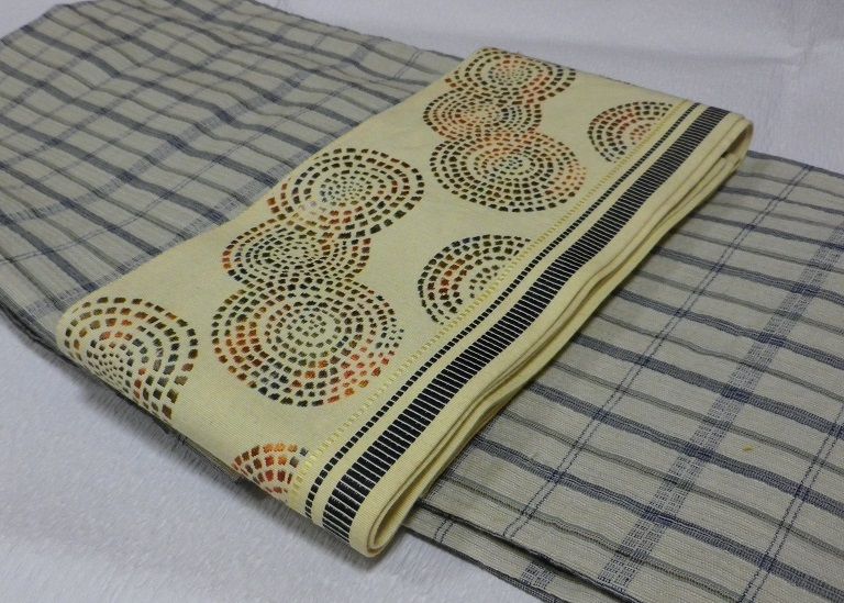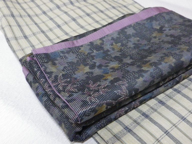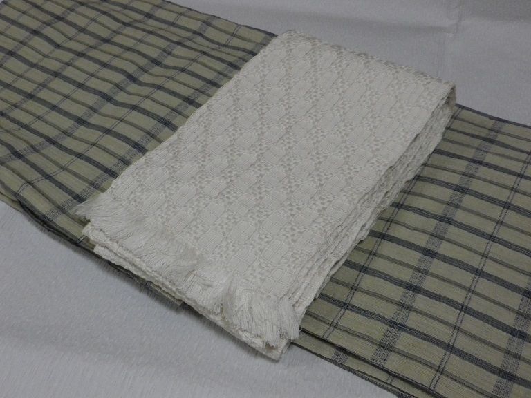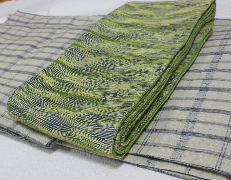 私が唯一持っている木綿着物(単衣のしじら織)と紬の名古屋帯