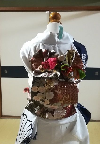昨日は前回の復習と、新年会で舞台の上で結ぶ帯結びの練習をしました。
