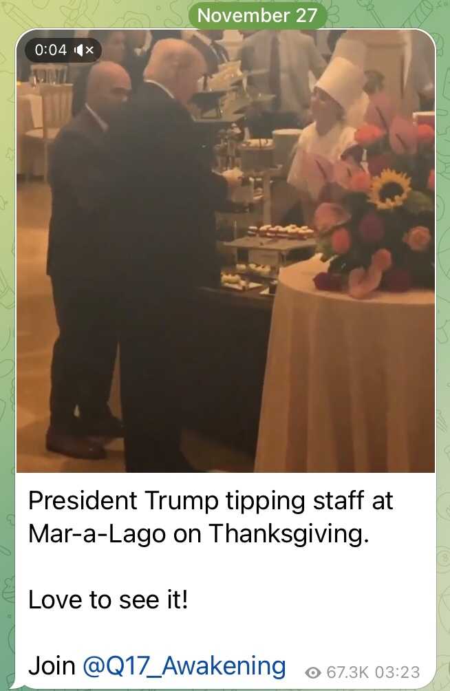 Thanksgiving(感謝祭)に、トランプ大統領がMar-a-Lagoでスタッフにチップを渡しています。
