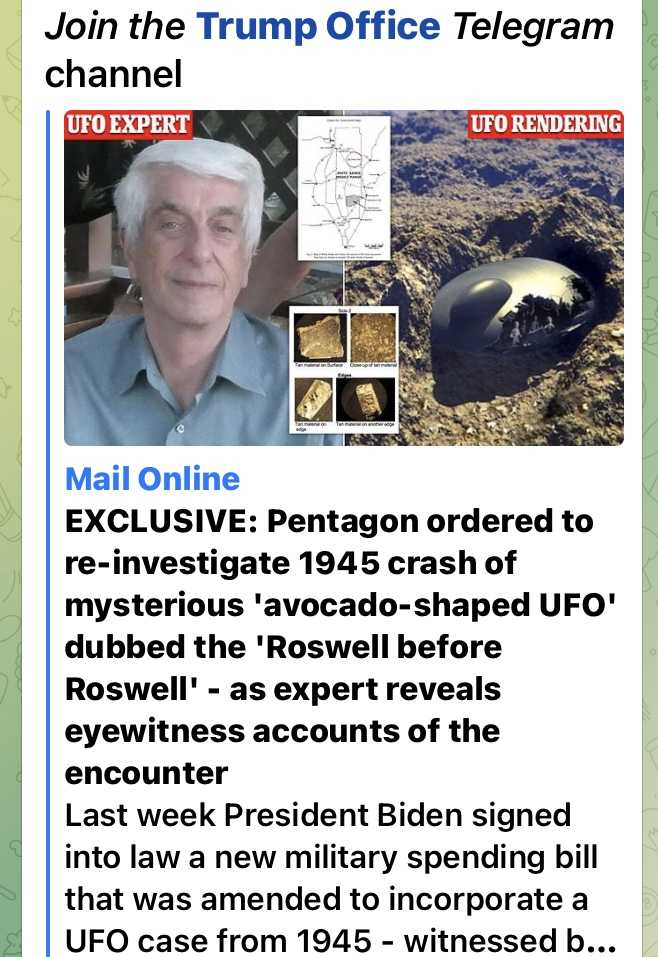 先週バイデン大統領が新たな軍事費法案に署名をした。それは1945年からのUFOケースを含むよう修正された -