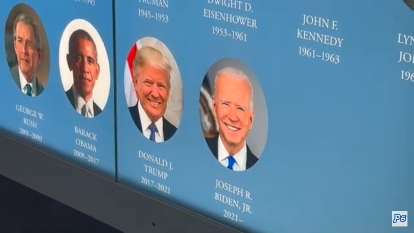 ホワイトハウス ビジターセンターの中に表示されている歴代の大統領の顔写真と就任期間の大きなパネルです。去年まではずっとトランプ大統領の任期が、2017 ー となっていたのですが、今はバイデンが現職の大統領として書かれています。