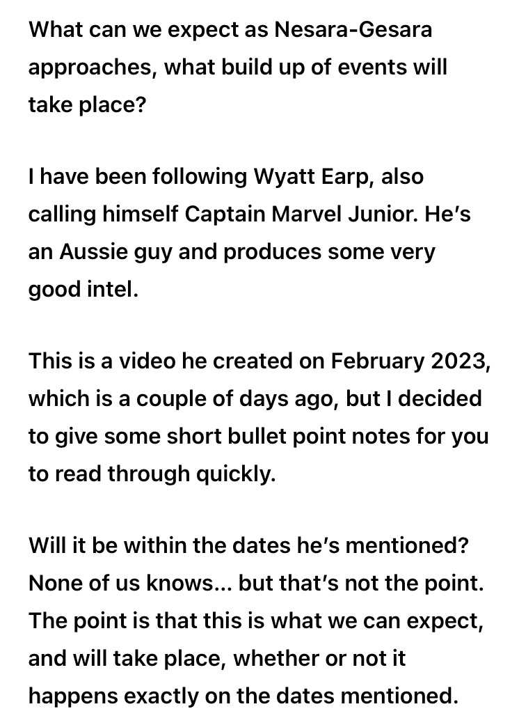 彼が挙げた日付の範囲内になるのか?誰にもわからない...しかし、それは重要なことではない。重要なのは、これが私たちが期待できることであり、言及された日付に正確に起こるかどうかにかかわらず、行われるということです。