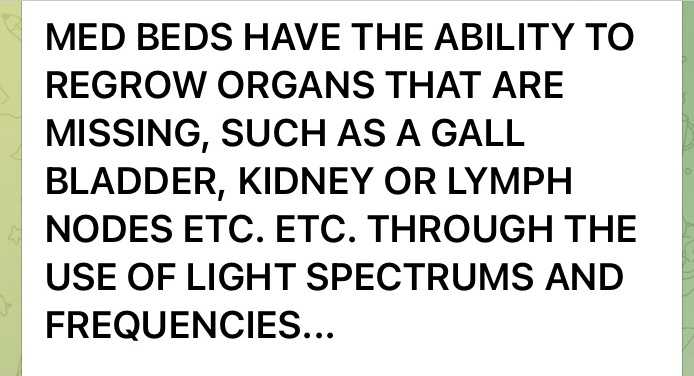 メドベッドは失った臓器、例えば、胆嚢、腎臓、リンパ節などを成長させることができる。光のスペクトラムと周波数を使うことで可能になる。