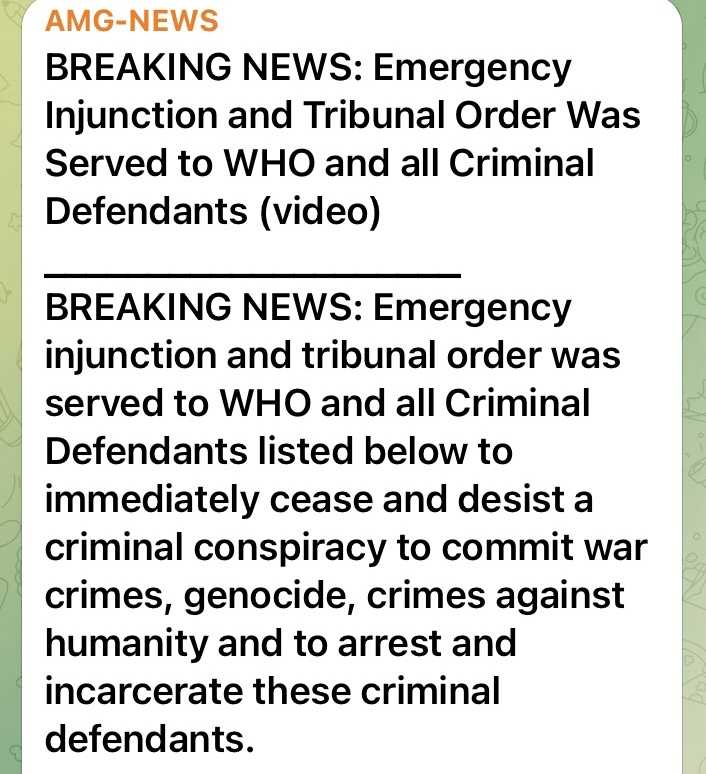 こちらもAMG Newsから、WHOに令状が出たそうです。