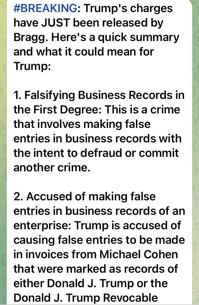 #BREAKING: トランプの罪状がブラッグによってJUSTリリースされました。以下、簡単なまとめと、トランプにとってどんな意味があるのかを紹介します: